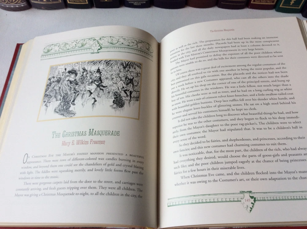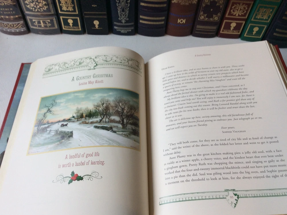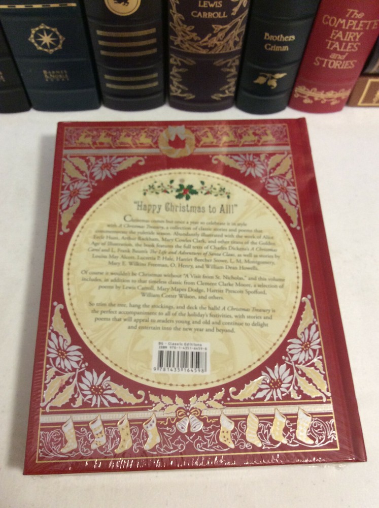 A Christmas Treasury - Classic Holiday Stories and Poems to Celebrate the Yuletide Season. A beautiful leather-bound edition full of delightful illustrations . Contents Introduction Stories A Christmas Carol - Charles Dickens A Country Christmas - Louisa May Alcott The Peterkins' Christmas-Tree - Lucretia P. Hale Christmas: or, the Good Fairy - Harriet Beecher Stowe A Christmas Inspiration by L.M. Montgomery The Christmas Masquerade by Mary E. Wilkins Freeman The Romance of a Christmas Carol - Kate Douglas Wiggin The Gift of the Magi - O. Henry Christmas Every Day - William Dean Howells The Life and Adventures of Santa Claus - L. Frank Baum Poems A Visit from St. Nicholas - Clement Clarke Moore Christmas Greetings - Lewis Carroll Birth and Adventures of Santa Claus - William Cotter Wilson Mrs. Kriss Kringle - Edith M. Thomas A Dear Little Schemer - Mary Mapes Dodge The Little Christmas-Tree - Susan Coolidge When His Whip Goes Crack - John H. Cook Christmas Snow - Harriet Prescott Spofford A New-Fashioned Christmas - Julie M. Lippmann Item Condition: This is a hardcover leatherbound, brand new, sealed. There are some minor flaws in the gilt page edging. Dimensions are approx: 10.25" x 8" x 1" This book will ship in a box, with bubble wrap Photos 1-6 are of the actual book that will be shipped, the rest are examples of the book from an opened copy.