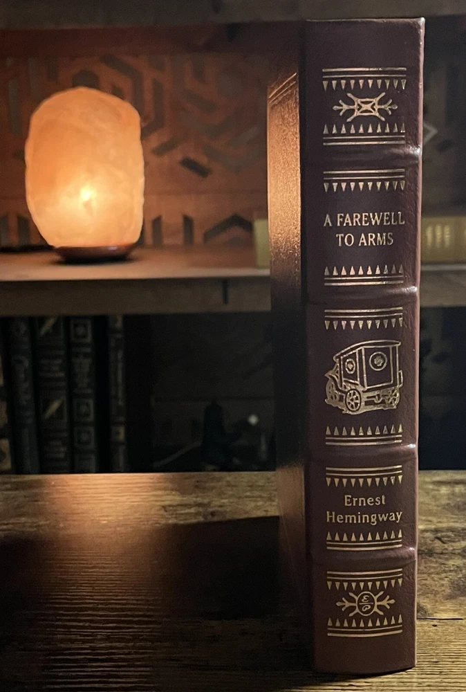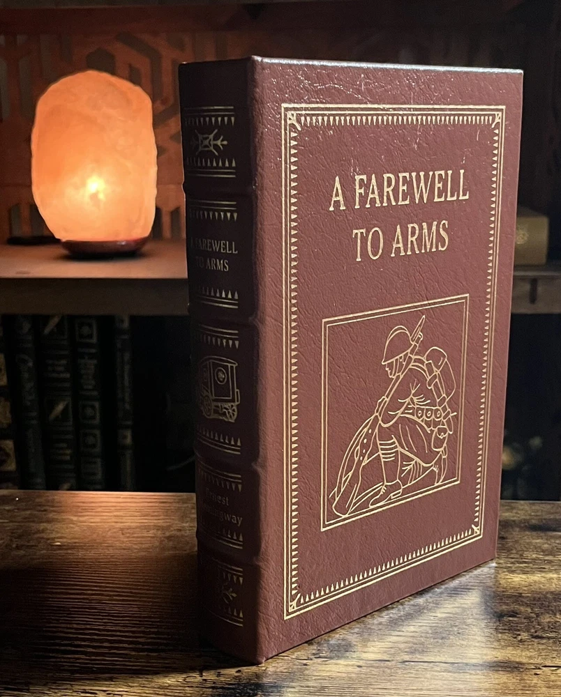 This is a stunning copy of the classic novel A Farewell to Arms by Ernest Hemingway, part of the Easton Press 100 Greatest Books Ever Written Series. The leather binding and deluxe design make it a collector's item for any literature enthusiast. The book was published in 2003 in Norwalk, Connecticut, with beautiful illustrations by Richard Sparks. The novel follows the story of Frederic Henry, an American ambulance driver in World War I, and his love affair with a British nurse. This edition includes special attributes such as being a limited, luxury and illustrated edition, making it a unique version of the book to own. This copy is in excellent condition, and will make a great addition to any collection.