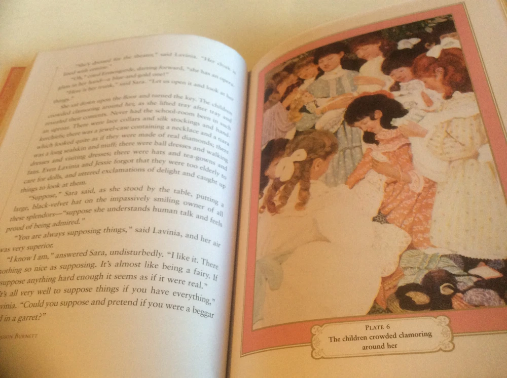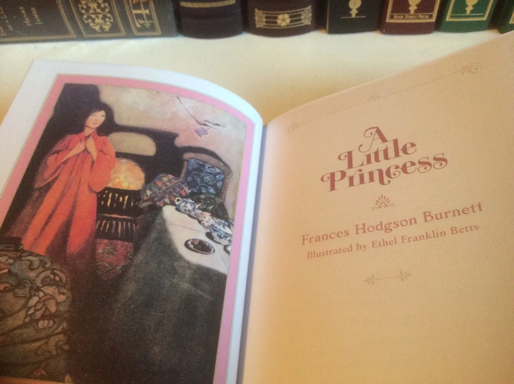 A Little Princess by Frances Hodgson Burnett bound in leather, with gilt-edged pages, and a ribbon marker. illustrated by Ethel Franklin Betts Item Condition: Brand new, still sealed. Dimensions are approx: 8.25" x 6.25" x .75" This book will ship in a box for standard shipping, and in a padded flat rate envelope for Priority shipping. Photos 1-6 are of the actual book that will be shipped, the rest are examples of the book from an open copy.