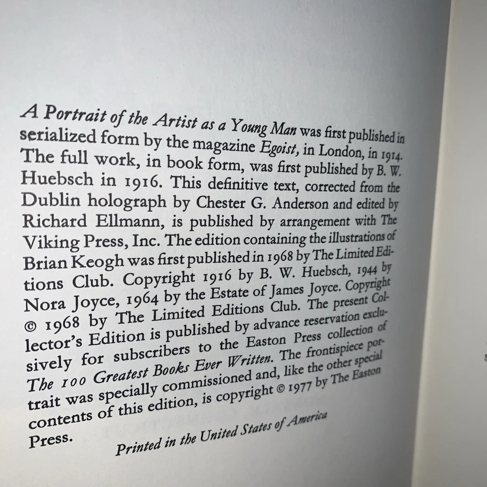 A Portrait of the Artist as a Young Man EASTON PRESS Joyce Collectors Edition Leather. No writing tears or folds noticed and very clean. Please inspect the pics as they are part of the description. 19...