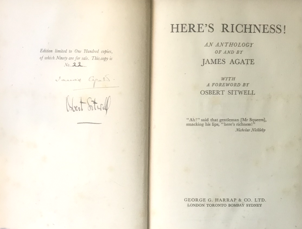 1942 Signed AGATE/SITWELL Limited Edition Half-Leather HC VG Rarity