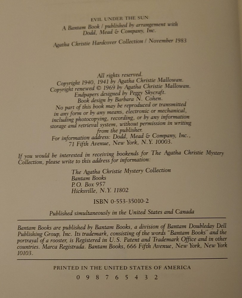 This Agatha Christie Leatherette Collection features the classic mystery novel "Evil Under the Sun". The hardcover book, published in 1983 by Agatha Christie, is part of the Mystery book series and is written in English. The book is a collectible item and is perfect for fans of the genre. The Leatherette format adds a unique touch to the design of the book and makes it a standout addition to any collection. The author, Agatha Christie, is known for her masterful storytelling and this book is no exception. The publisher, also Agatha Christie, ensures the quality of the book and its lasting durability. This book is a must-have for any mystery fan or collector. May have some tear and wear. Pictures are for illustrative purposes. Item might differ from pictures.