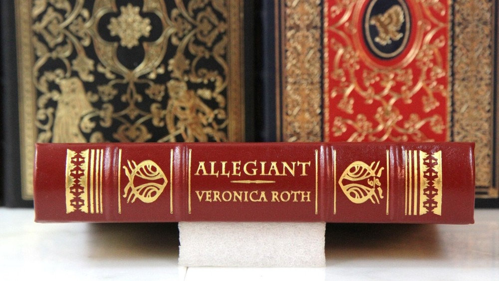 ***Copy of photos, personal formats, graphics, or text is prohibited . Ebay may drop listings with infractions. I review content regularly. From the Divergent Series Allegiant Author: Veronica Roth Illustrations by Description : A very rare title to find as a single. From the Divergent series by Veronica Roth. This listing is for just the one title ALLEGIANT and this title does not come signed. ***Please note that the movie stills and poster from the movies are not included in the book and are posted here only for context. Condition : Leather is bright with only light sign of shelf wear. Some visible marr to gilt page ends with some brushes on the back page ends and thin scratches on top and bottom page ends. Though the brushes on the back page ends are large, they are not deep like a scratch. A pretty crisp copy despite the minor flaws. It's difficult to get this as a single title in any condition. This Fine Leather Book Features: Top grade, gold embossed/ornamented leather Gilded page ends to protect against dust and moisture Decorative end papers Acid neutral archival paper to last generations