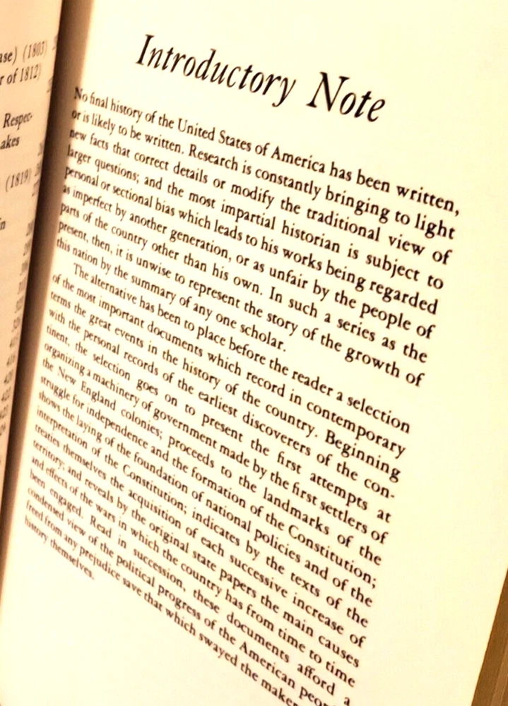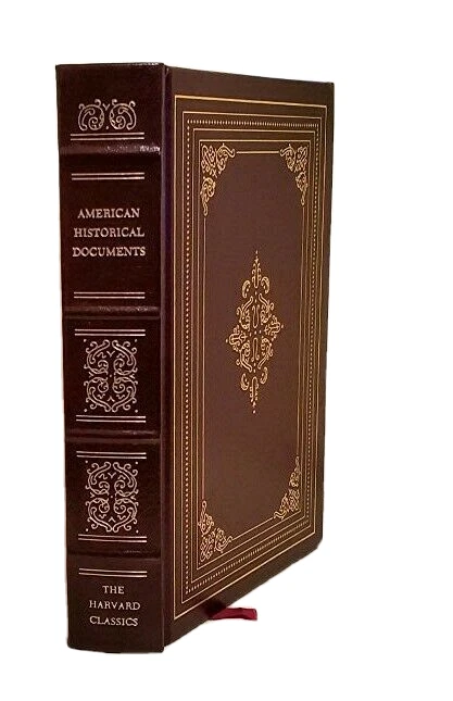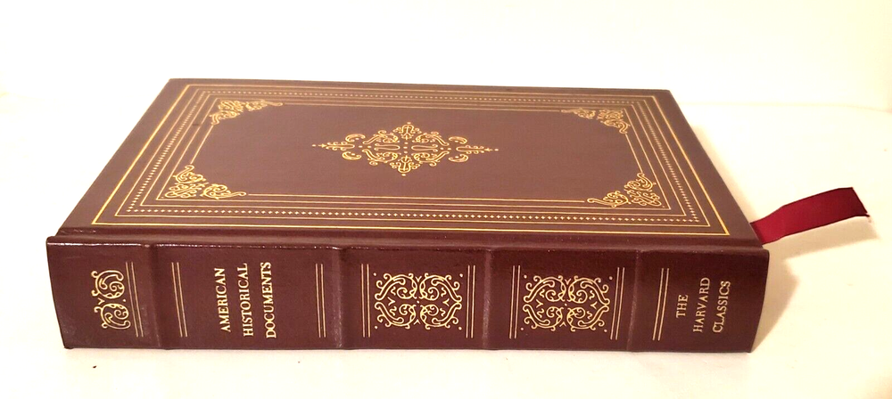 AMERICAN HISTORICAL DOCUMENTS 100- 1904 AMERICAN HISTORICAL DOCUMENTS , 1000 - 1904 ..... Published by Grolier in 1980......From the Harvard Classics .......462 pages ... DESCRIPTION - The book is bound in a dark red bonded leather cover, with raised bands, gold letterin' on spine and cover, and marbled endpapers......Pages tipped in gold, and a satin ribbon page marker......A very decorative book.......Mercy!!!!... The book measures 8 3/4 high, 6 inches across the front… … CONDITION - The big fella is overall very good condition........ The pages are good, with some wear on the edges. ......The cover is solid, with some wear and use......And the spine has a slight lean to it, which oughta go away when the book is placed on the shelf with other books .... ..... This is a good, solid used book......And it looks purty good a-settin' on the shelf, can be used for display and readin'......I think you will be pleased with it .. ... PAYMENT AND SHIPPIN ' - 'Course the thrilled winner is gonna hafta pay $5.45 for postage and handlin'.........Multiple purchases save on shippin' .. .. . ...Now while you're here, why don't you give my other auctions a look-see...Why, I 'spect I got a wagon load of mighty good books over yonder in my Book Barn... Thanks a heap....!! - - - ol' arkee