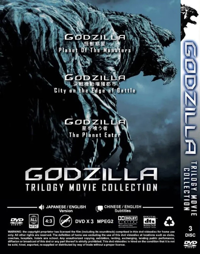 JAPANESE ANIMATION GODZILLA THE MOVIE 1-3 * ENGLISH DUBBED * MOVIE 1 : KAIJUU WAKUSEI MOVIE 2 : KASSEN KIDOU ZOUSHOKU TOSHI MOVIE 3 : HOSHI O KUU MONO Language : Japanese / English Subtitle : English No. of Episode : 3 Movie No. of Disc : 3 Condition : NEW, Original & Licensed ITEM Media Type : NTSC, Widescreen 16 : 9 ( Region ALL ) Payment & Shipping -We Accept PAYPAL Only. - Tracking Number Will Be Provided. - Free Register Track Your Shipment 10 to 18 Days Without Sat & Sun Working Days. - Item Will Be Processed And Ship Within 2 Or 3 Working Day ( NOT INCLUDED WEEKED AND PUCBLIC HOLIDAY ). - As The Seller, We Are Not Liable For Any EXTRA COST / CHARGE / TAX Imposed By Your Custom Upon Receiving The Package. Return - Buyer Pay The Return Postage. 30 Days Returnable. - Items Must Be Returned In Perfect Original Condition, Buyer Responsible For Return Shipping Cost Refunds Will Be Arranged Thru PAYPAL . About Feedback - Please Contact us to Resolve any bad issue before leaving Neutral or Negative Feedback.