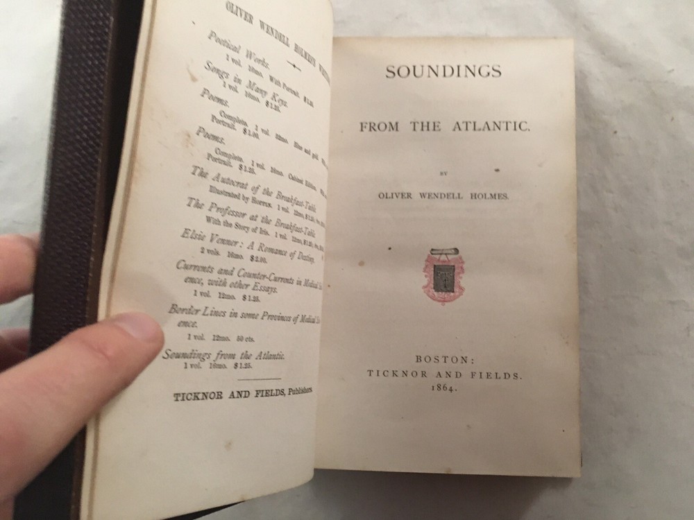 Oliver Wendell Holmes, Soundings from the Atlantic (Boston: 1864) 468pp approximately 7.1/4 inches high...
