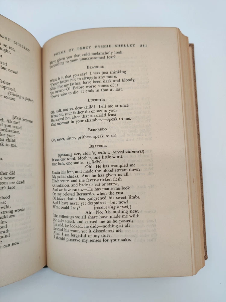 ANTIQUE SMALL FINE LEATHER BOOK POEMS OF SHELLEY GOLDEN TREASURY SERIES 1920. Book has been well read and shows signs of wear on the spine. Please see pictures for specific condition. Will combine shipping on multiple items