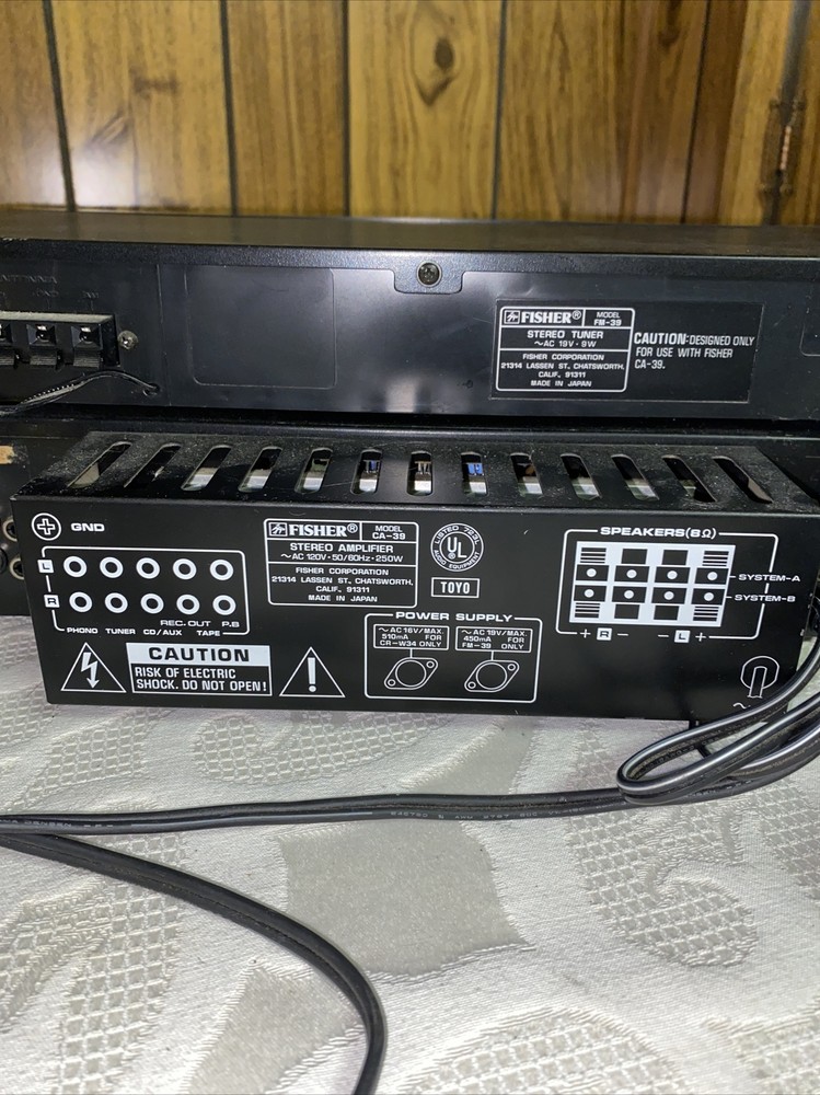 Vintage Fisher CA-39 Integrated Stereo Amplifier & AM/FM Synthesizer Tuner FM-39, shipped with cheapest shipping option for buyer’s convenience. Unit is tested and NOT WORKING. It is likely the amplifier went out or something inside it needs to be repaired as a type of burning circuitry odor can be smelled while the amplifier is on, even with an 8 ohm speaker connected. The AM/FM tuner seems to still be in good working condition but the amplifier is not outputting sound! Amplifier is definitely still worth its weight in parts as it was working properly for quite some time before the 3ohm speakers that were attached to the unit most likely caused damage to the receiver. So, if you think you can fix this powerhouse of a vintage amplifier, or may just want to use it for parts, go ahead and buy it, and it’ll be yours. Thanks for looking! Questions or need a PC? Just ask! **Please Note** This item is 100% as described and there ARE NO RETURNS ON THIS ITEM even if it says “this item is covered by the eBay money back guarantee” IT SHOULDNT SAY THAT FOR AN AS IS FOR PARTS ITEM AND THIS CANNOT BE RETURNED NO MATTER WHAT. Even if you want to lie and mark the item not as described, we will appeal your return and eBay will grant it in our favor due to the item’s condition. So please, if you buy this, don’t try any dumb scamming tactics. We are on to people like this and eBay does not weigh things in favor of those who try to exploit their return policies