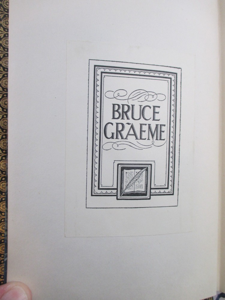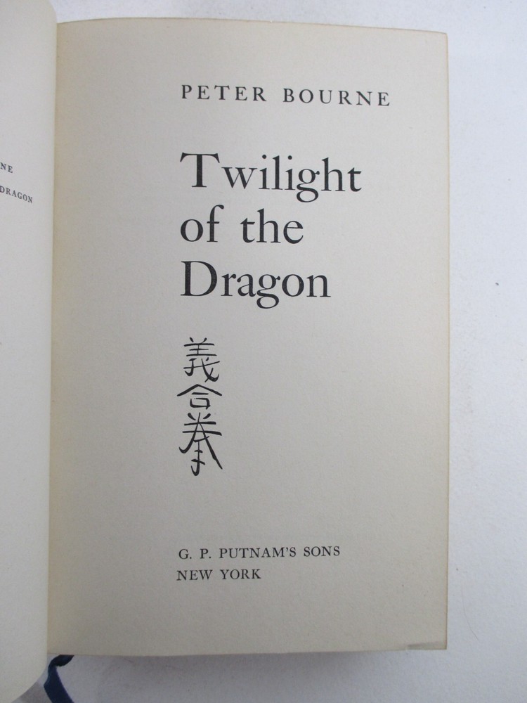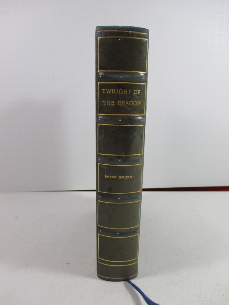 For sale is an excellent condition, first edition copy of Twilight of the Dragon by Peter Bourne aka Bruce Graeme . This copy was owned by the author, and was specially re-bound in leather for him. Bruce Graeme was a pseudonym for Graham Montague Jeffries, who also wrote as Peter Bourne and David Graeme. The cover features the gilded initials B.G.M.J. There is a bookplate affixed inside front cover from the personal library of Bruce Graeme. Published in 1954 by G.P. Putnam's Sons, New York. Binding is tight and pages are unmarked. Features beautiful marbled endpapers. Leather boards are clean and square with minor shelf wear and rubbing along the edges. Please see photos for condition detail. shelf reference #L-844