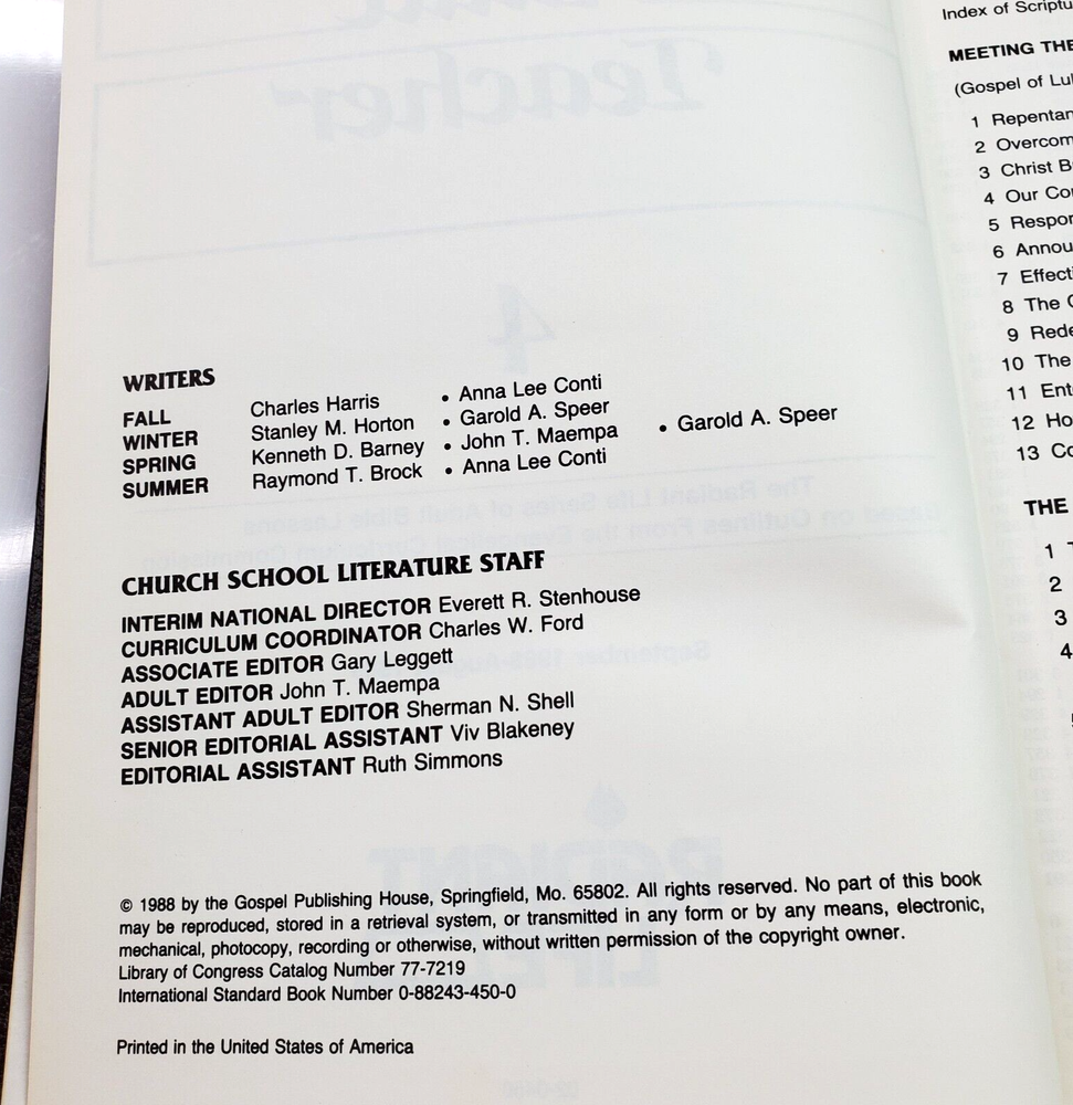 Adult Teacher Vol. 4 John T Maempa 1988 The Radiant Life Series Of Adult Bible This is the fourth volume of the Adult Teacher series from The Gospel Publishing House. Written by John T Maempa, this hardcover book is part of the Radiant Life Series of Adult Bible Lessons. It is a vintage book published in 1988 and is perfect for adults who want to learn more about the Bible. The book is faux leather bound and comes in a unit quantity of one. It is not personalized, signed, or inscribed. The intended audience is adults and the topic is the Bible. The book is in English and the original language is also English. Pre-owned, Adult Teacher Vol. 4 John T Maempa 1988 The Radiant Life Series Of Adult Bible Department Books Adult Teacher Vol.4 By John T. Maempa Book Condition Acceptable Hardcover Text Is Clean And Unmarked Outer Condition Acceptable Outer Condition Shows Minor Wear We Offer Free 30 Day Return On Items