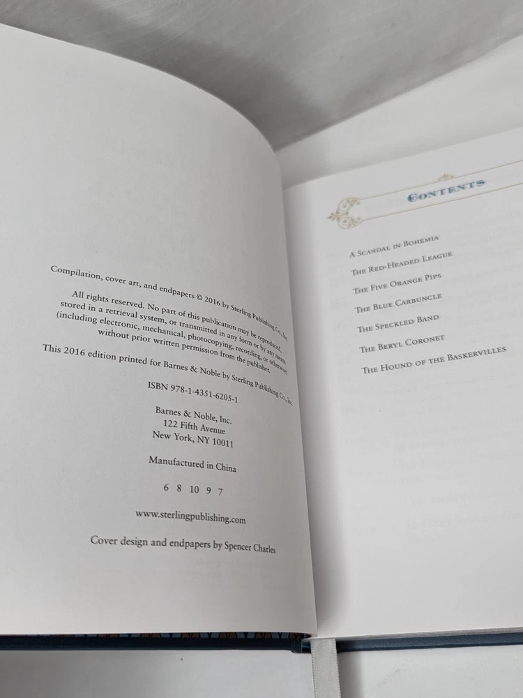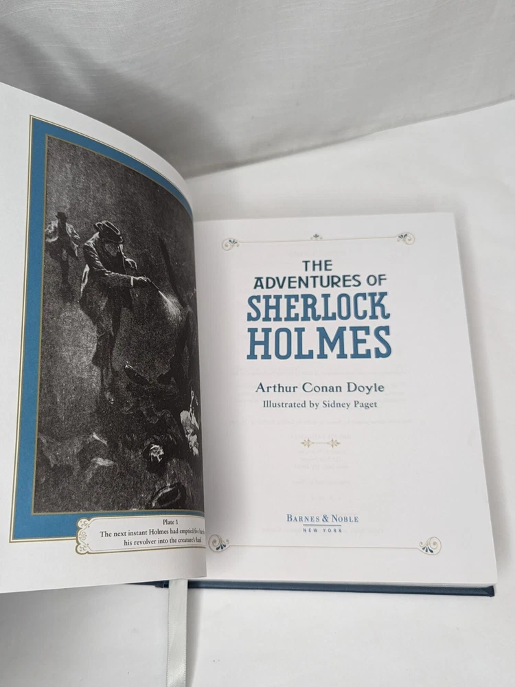 The Adventures of Sherlock Holmes by Sir Arthur Conan Doyle, bound in decorative bonded leather and published by Barnes and Noble as one of their collector series. A beautiful looking book in Like-New to New condition, this copy has only very minor shelf-wear as shown - unbroken, tight binding and clean pages. Photos are of the exact copy available for sale.