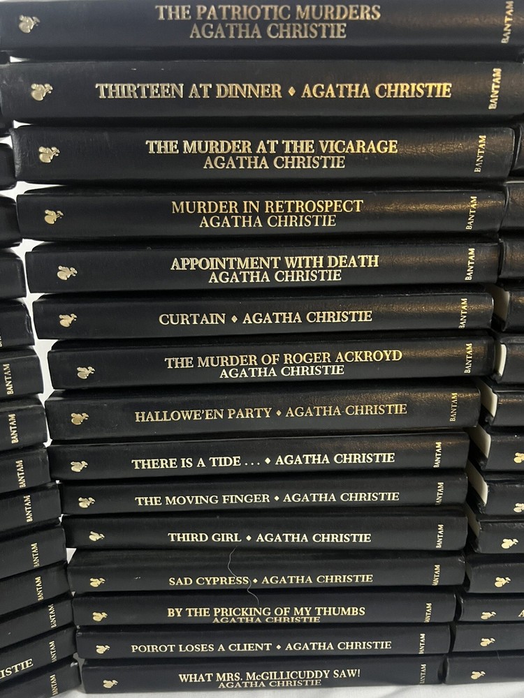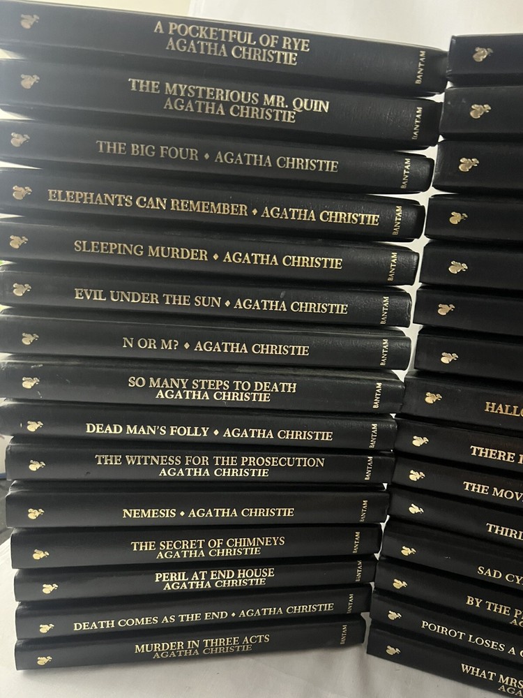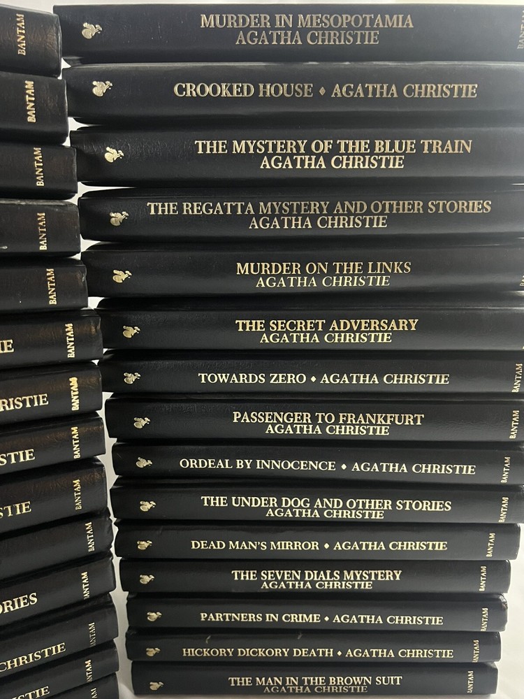 Immerse yourself in the gripping world of mystery with the Agatha Christie Mystery Collection. This extensive set includes 66 volumes, each offering a captivating tale that has stood the test of time. The collection showcases the masterful storytelling of Agatha Christie, beloved by readers for generations. With the added bonus of three more Agatha Christie novels, this set is a treasure trove for aficionados and newcomers alike. Crafted for the discerning bibliophile, the Bantam Leatherette editions boast a sophisticated faux leather binding that exudes classic charm. Published in 1986 by Bantam Books, these hardcover novels are a testament to Christie's enduring legacy in the mystery genre. Whether you're a young adult or a seasoned reader, these books are sure to provide hours of engaging entertainment. Includes: 66 Agatha Christie Mystery Collection Books Agatha Christie AutoBiography - New Bedside, Bathtub & Armchair Companion to Agatha Christie - Agatha Christie Biography by Janet Morgan