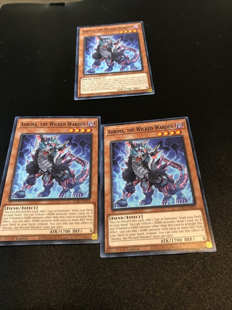 Elevate your Yu-Gi-Oh! TCG collection with the formidable Ahrima, the Wicked Warden from the Egyptian God Deck: Slifer the Sky Dragon set. As an Effect-type Fiend monster, it brings a unique edge to the game with its 1700 attack power and 0 defense toughness. Its rarity as a Common / Short Print and the fact that it's a 1st Edition card make it a distinctive addition to any deck.Crafted by Konami, the card's attribute is dark, ensuring it stands out in both aesthetic and gameplay value. Designed for players aged 6 and up, Ahrima, the Wicked Warden (EGS1-EN016) comes in English language, adhering to the standard card size with a regular finish. Whether for competitive play or casual collecting, this card is an essential piece for enthusiasts and fans of the Yu-Gi-Oh! universe.