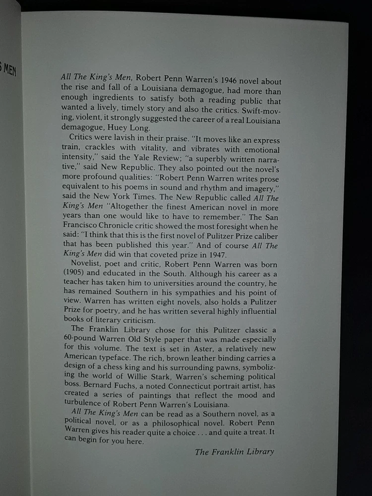 Pulitzer Prize 1947. Not in publishers original packing materials. Cover: Black leather with gold lettering and design on front, back and spine. End Pages: Red moire' silk Bookmark: red satin Page Edges: Gilt Published without dust jacket. We are 100% staffed with volunteers and all our items are donated. All our profits are returned to our local library to help fund children and adult educational programming. Our goal is to get all items dispatched from our location within 24-48 hours; however, we do not have access to our inventory on holidays. We ship by USPS Media Mail when possible and provide tracking numbers. We offer combined shipping when you order multiple items. We are committed to ensuring each customer is entirely satisfied with their purchase. If you have any questions or concerns, please contact us directly.