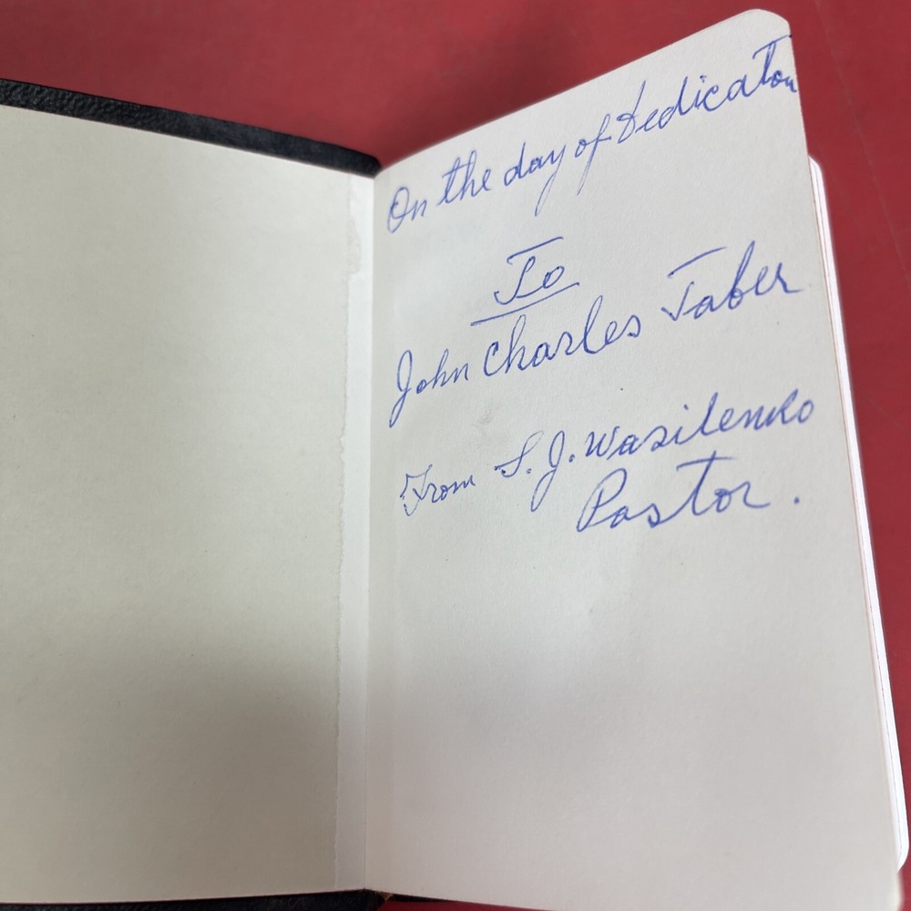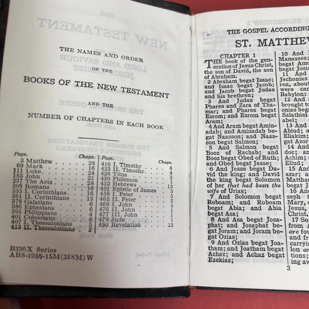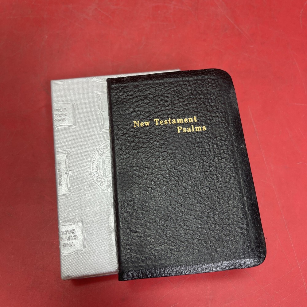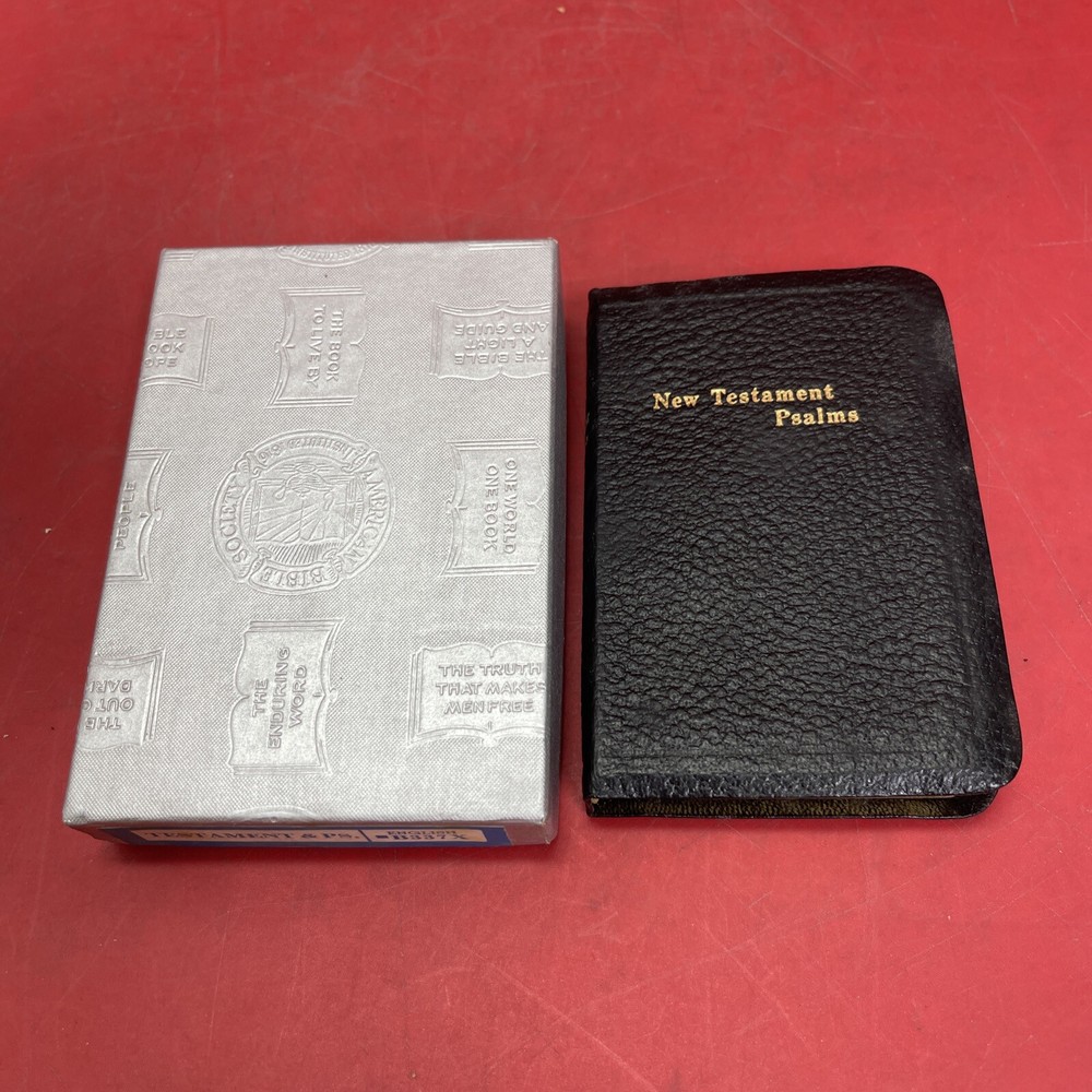 This collector's edition box set features the American Bible Society's New Testament with Psalms in a faux leather bound mini format. Published in 1963, this vintage book series is a nonfiction narrative type that is perfect for religious and spiritual topics. The book is in English and intended for adults. The book features the original English language and is a part of the American Bible Society's Book series. It is a perfect addition to any collection with its unique format and design. The book is not signed and the country/region of manufacture is unknown. This pocket Bible is published by the American Bible Society and is a must-have for any religious enthusiast.