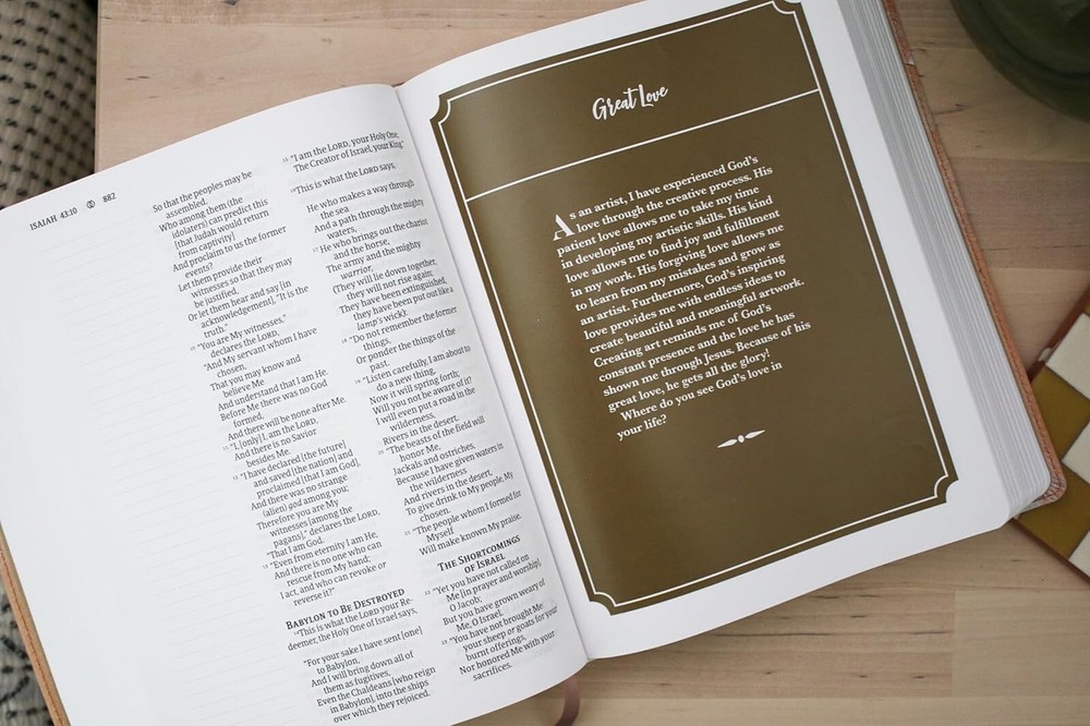 This Bible is absolutely stunning! The soft leather-look cover in blush is so elegant, and Anne Neilson's angel artwork adds a beautiful, inspirational touch. The Amplified Bible’s rich translation pairs perfectly with the full-color pages and artist reflections—it’s like worship and art combined. Still sealed in shrink wrap, pristine condition. A must-have for anyone who loves Scripture and artistry!