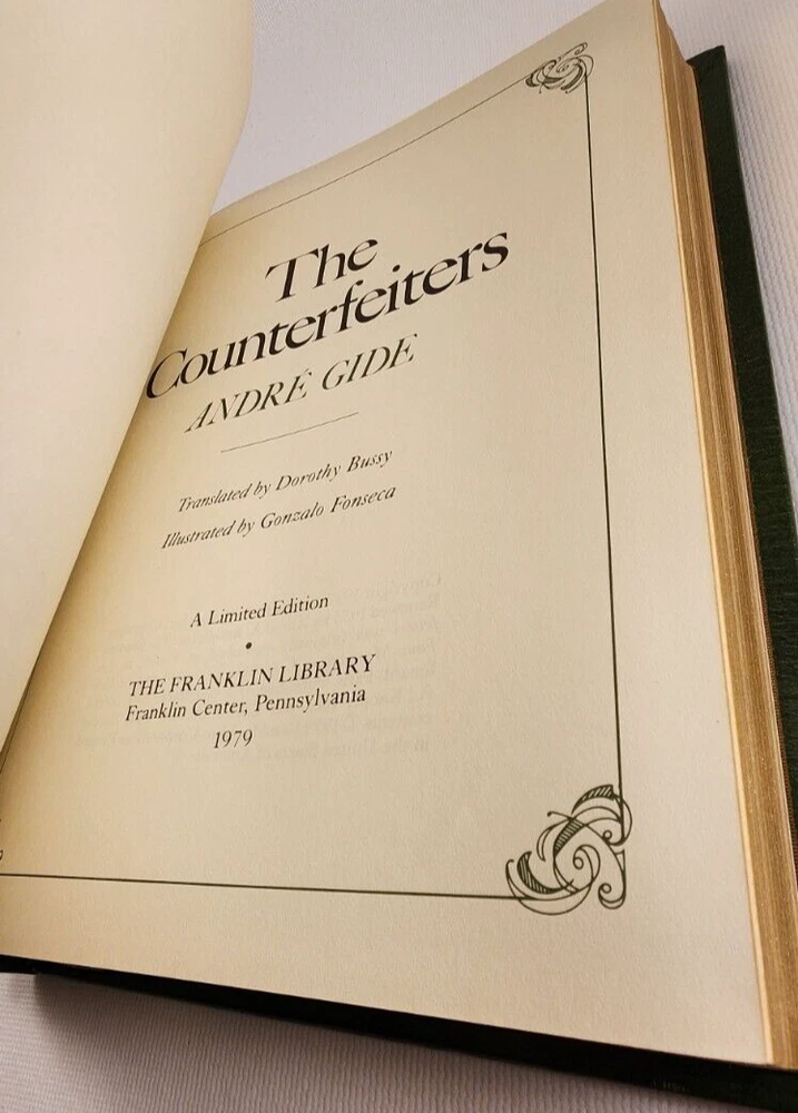The Counterfeiters Andre Gide Franklin Library Limited Edition Leather Bound 1979 Hardcover Very Good condition, appears unread, clean copy. View photos for details. International buyers, please note: Import duties, taxes, and charges (typically collected upon delivery or pickup) are the buyer’s responsibility and are not included in the item price or shipping charges. Please check with your country’s customs office prior to bidding/buying to determine what these additional costs will be.
