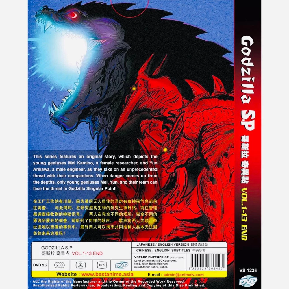 Created with Eselt - Responsive Designs for eBay Sellers LOVE IT, FIND IT, BUY IT. Give us a call Send us a message Created with Eselt - Responsive Designs for eBay Sellers Our Store Seller Profile Feedback About us Contact Created with Eselt - Responsive Designs for eBay Sellers Anime Godzilla: S.P (Singular Point) DVD Vol. 1-13 END Complete with English Sub SUMMARY: "Godzilla Singular Point (S.P)" is an anime series that reimagines the classic Godzilla franchise with a fresh storyline. Here's a general summary of the series: Set in a world where kaiju (giant monsters) are a recurring threat, "Godzilla Singular Point" follows the story of two main characters: Yun Arikawa, a young genius graduate student specializing in biology and paleontology, and Mei Kamino, an engineer and researcher. They find themselves drawn into a series of mysterious events when unusual phenomena start occurring around the world. The story weaves together various plot threads, including a mathematical equation known as the "Archetype G" and the appearance of enigmatic creatures. These phenomena are linked to the emergence of Godzilla, who is not the typical version of the monster seen in previous films. Instead, Godzilla in this series takes on a unique and evolving form. Yun and Mei team up with a group of scientists, engineers, and researchers to investigate the mysteries surrounding Godzilla and the kaiju. They also encounter other classic kaiju like Rodan and Anguirus, each with their own unique twist in this series. As they delve deeper into the scientific and mathematical aspects of the kaiju, the characters strive to understand and combat these colossal threats. The series explores themes of scientific discovery, technological innovation, and the consequences of meddling with forces beyond human comprehension. "Godzilla Singular Point" combines elements of science fiction, mystery, and kaiju action, offering a fresh take on the iconic Godzilla franchise while staying true to its roots. The series features intense battles between the human characters and the kaiju, blending strategic thinking and scientific knowledge in their efforts to save the world from destruction. Notes: We Only Sell Original / Genuine DVDs. DVD All Selling Publisher Licensed In Malaysia. All DVDs Come With Hologram By Malaysia Censorship Board. All DVDs is Region FREE, Playable Worldwide. Condition : NEW, Original & Licensed Item Version : Japanese / English Subtitles : Chinese / English Format : DVD / NTSC & All Region Code (16:9) Numbers of episode : 1 - 13 (End) No Of Disc : 2 Disc Only Genres : Action , Sci-Fi, Mystery , Mecha Created with Eselt - Responsive Designs for eBay Sellers Payment Currently we accept payment through eBay manage payment. Shipping SHIP FROM USA Item location : Walnut, California | Zip code : 91789 We are using DHL express, DHL ecommerce, UPS Mail Innovation, USPS First class. Handling time is 1-2 working days . Your goods will be shipped with valid tracking number. All products is packed , layered with bubble wrap to reduce damages during shipment delivery. Estimate delivery is between 3 to 7 business days. Returns If you have any problem with the order, please do not hesitated to contact us via eBay message. We are glad to assist you and solve the problem as soon as possible. Items can be returned within 30 days in a good condition. Other Notes: Import duties, taxes and additional charges are not included in the item price or shipping charges. Please be aware this custom import duties and taxes are buyer's responsibility. Thank you for your order. You are awesome! Your support of our business means the world. Have a wonderful day and come back soon and also DON'T FORGET TO SMILE. Created with Eselt - Responsive Designs for eBay Sellers Links Our Store Seller Profile Feedback About us Contact More items Are you looking for something similar? See our other items! Show more items Contact Give us a call Send us a message
