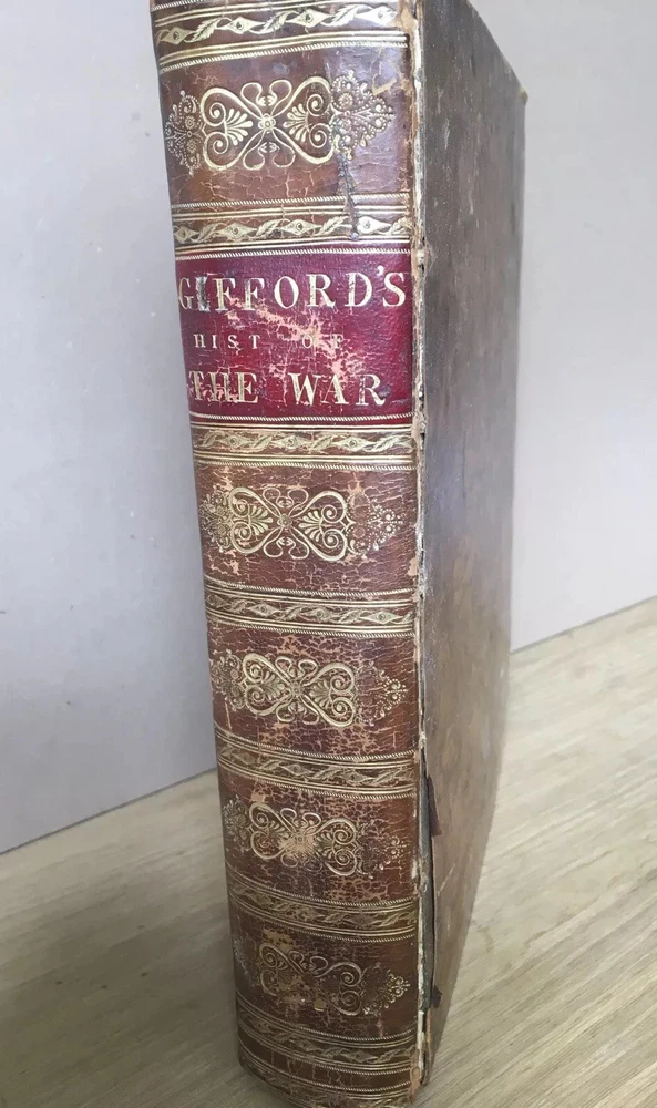 Antique Gilt Leather Gifford’s Hist Of The War With Map Hardcover Books 1840 #6...