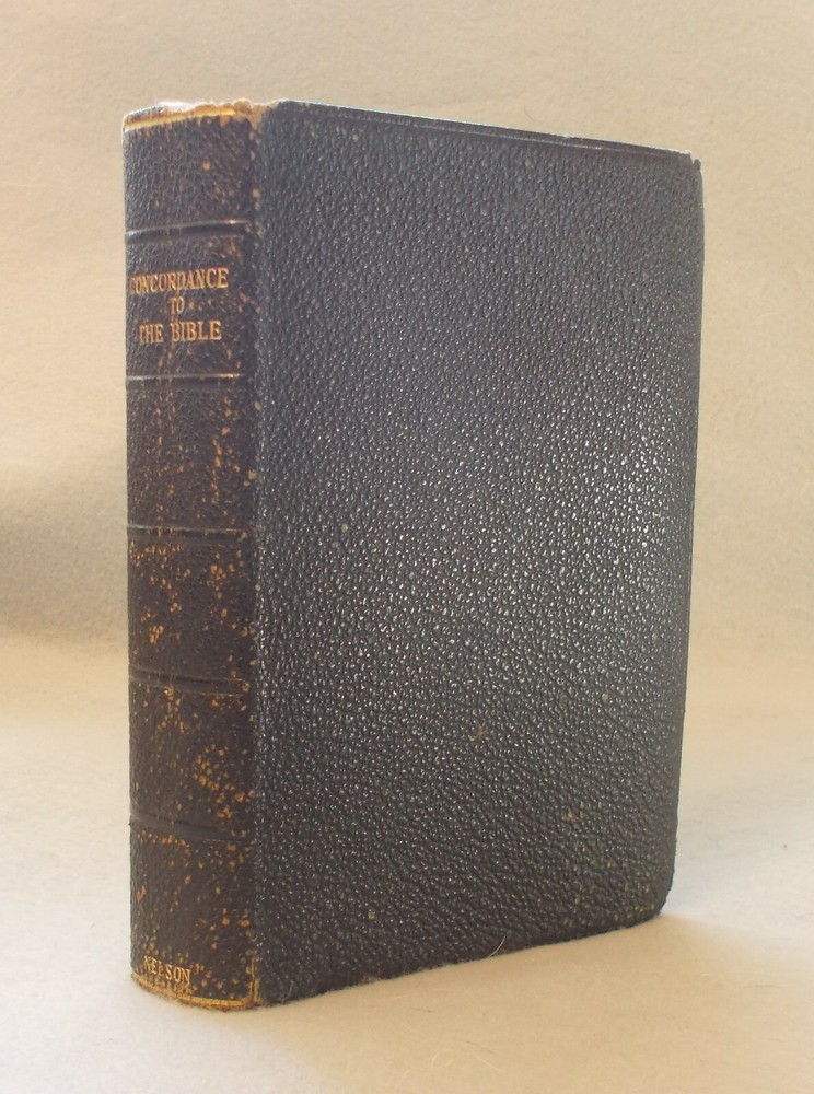 Nelson's Concordance to the Bible: Dictionary of Proper Names and Subject Index . NY: Thomas Nelson and Sons, 1900. Leather: Good. 6.5" x 4.5", 576pp bound in full leather. A nice copy with some rubbing on the cover and a name and date on a blank page.