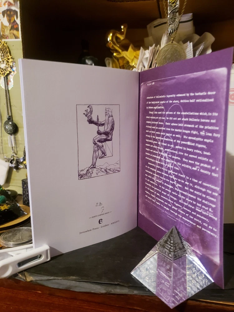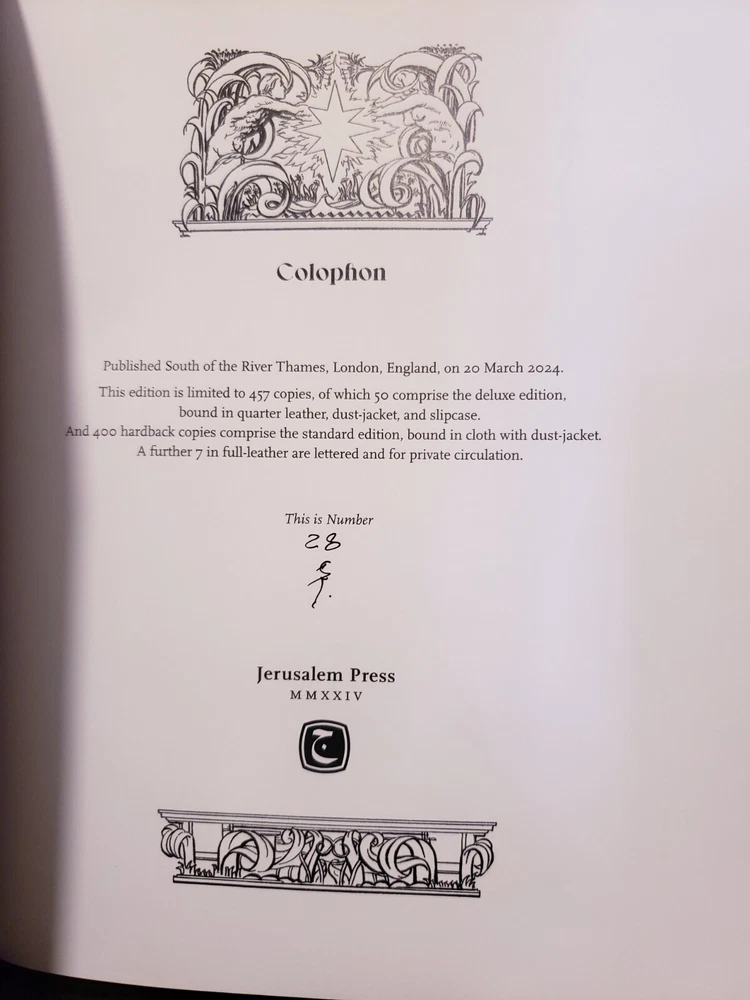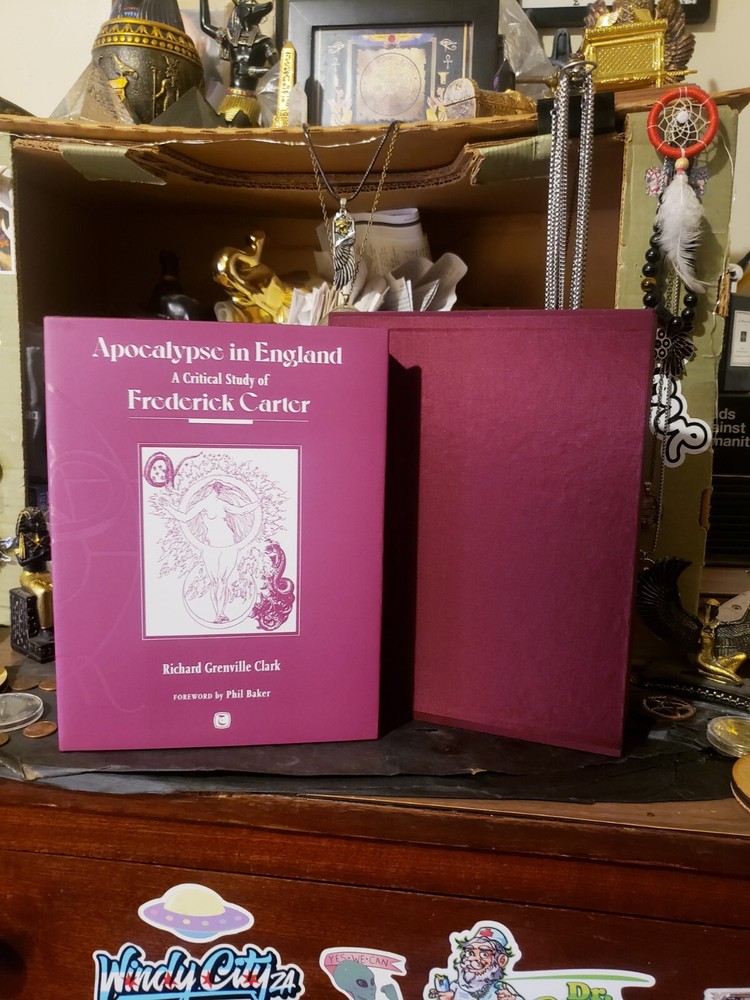SEE PHOTOS Fine Condition ~~~~~~~~~~~~~~~~~~~~~ Frederick Carter Series: Book 1 Apocalypse in England: A Critical Study of Frederick Carter Signed By (Author) Richard Grenville Clark Jerusalem Press 2024 #28 of 90 hand numbered & signed copies "This is the first complete biography of Frederick Carter, reflecting a growing interest in his work. It follows on from the author's previous exploration of Carter's etchings and engravings in Frederick Carter ARE 1883-1967 A Study of His Etchings. That drew together important biographical details, firmly placing the artist back in the history of English art and society. This more comprehensive study views the artist in a wider context, examining Carter's development, the influences on his life and art, his religious beliefs, and interest in symbolism, that helped to form his work before and after both world wars. Carter's engagement with literary and artistic subjects alone would allow him a significant place in our cultural history. But Carter's range was truly polymathic and his long, uneven career forced him to engage with many of the major events of the early twentieth century, its characteristic problems, his place in Bohemia, its artists and intellectuals. We encounter many literary figures: D.H. Lawrence, Arthur Machen, John Gawsworth. Henry Miller. M.P. Shiel, Thomas Burke. It was a milieu of mystics and bohemians: Aleister Crowley, Wyndham Lewis. W.H. Davies, George Raffalovich, Austin Osman Spare, W.B. Yeats, all befriended by Frederick Carter." ~~~~~~~~~~~~~~~~~~~~~ Features: *Custom Satin-lined Slipcase *Signed Post Art *Insert facsimile of Carter’s ex-libris *An exclusive facsimile of the typescript – "Cocktails at Crowley’s" *Hand-marbled endpapers *Quarter-bound in leather *Over 300 black & white images *Everything Hand Signed & Hand-numbered ~~~~~~~~~~~~~~~~~~~~~ Forthcoming titles exclusively from Jerusalem Press in The Frederick Carter Series; Book II: Collected Short Stories Book III: Collected Art Works Book IV: Collected Mystical Writings