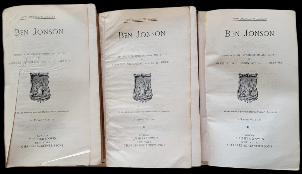Immerse yourself in the captivating world of poetry and plays with the complete 'Mermaid Series' collection by Ben Jonson. Encased in luxurious leather covers, these volumes are a testament to classical literature and fiction, offering an enriching reading experience to enthusiasts and collectors alike. The set is a treasure trove of linguistic artistry, presented in English, allowing you to delve into the rich tapestry of Jonson's narrative. With its antique charm and timeless appeal, this collection is a perfect addition to any bibliophile's library or a splendid gift for those who appreciate the beauty of literature. This antique three volume set is undated. The leather covers are scuffed and worn. All of the covers are securely attached and the pages are tightly bound. Each book has an ex-libris sticker on the inside front cover. Volume 3 has a notation on the last page and the ink has bled over onto the inside back cover. Every effort has been made to accurately document the condition of this item, so please examine the photos closely before purchasing. Carefully packaged and shipped to you in a box via USPS Media Mail. FAST SHIPPING!!! jcourt24121