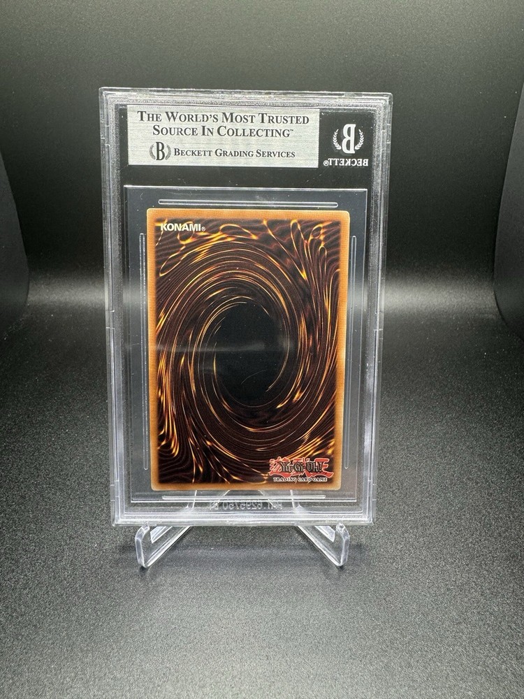 The product is a BGS 8.5 graded Left Leg of the Forbidden One, a Yu-Gi-Oh! TCG card from the "The Legend of Blue Eyes White Dragon - Unlimited Edition" set. It is an Ultra Rare card with the Attribute of Dark and a LEGEND speciality. The card is a Spellcaster with a high Defense/Toughness of 300 and an Attack/Power of 200, making it a powerful addition to any card collection. Manufactured by Konami, this English language card is a must-have for fans of the Yu-Gi-Oh! franchise. PSA 9 equivalent quality!