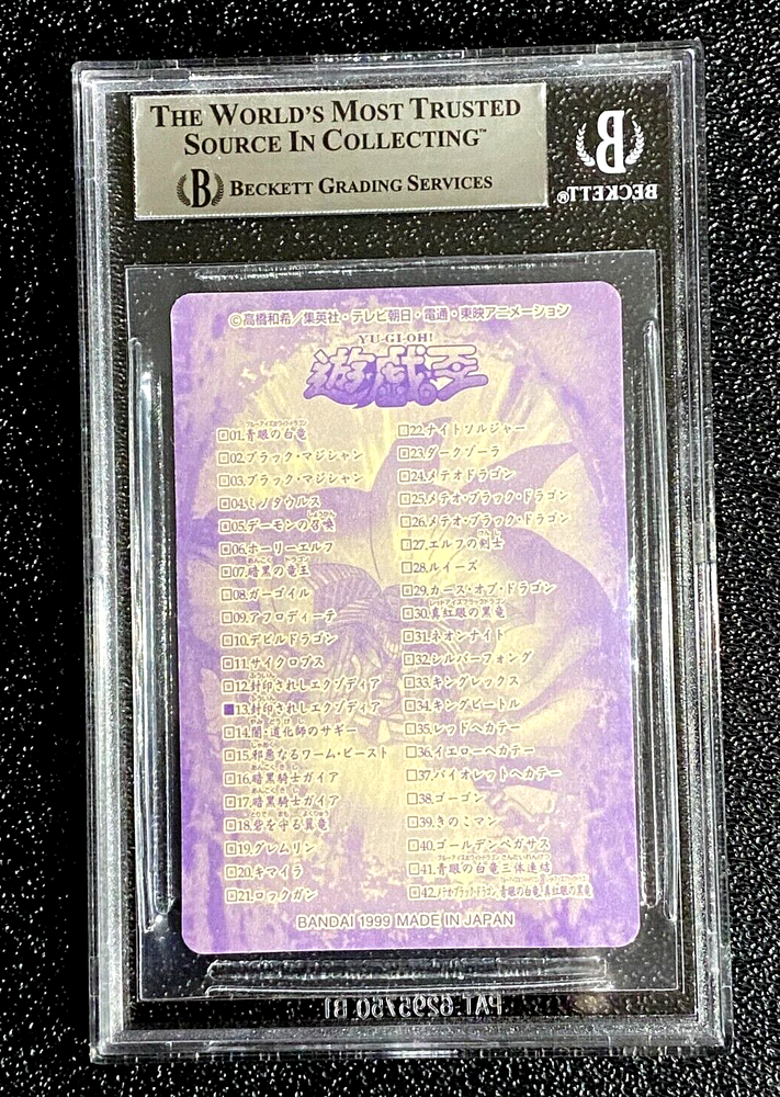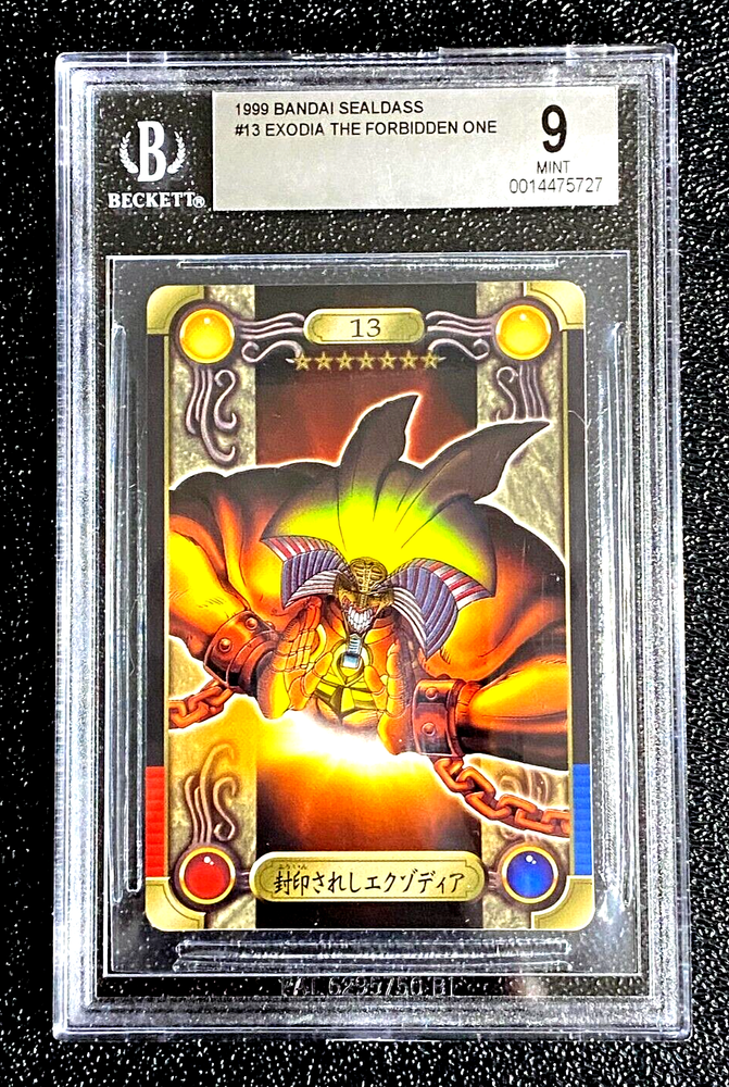 BGS 9 MINT 1999 JAPANESE EXODIA THE FORBIDDEN ONE #13 BANDAI SEALDASS G3862&3863R32E07222 BEST PACKING ON EBAY GUARANTEED. WITH THAT SAID I HAVE BEEN TOLD I “OVER-DO-IT”. But I feel this is a testament to how much respect and care I have for your item. PLEASE, if you see an error in one of my listing send me a message, Thank you. ig= card . addiction Please subscribe if you are interested in a monthly news letter. Items with multiple cards of the same card for sale are mailed out in random order , but are all within the same condition as stated in “Card Condition” and or Item Description. SLABS MAY HAVE SOME SCRATCHES AND OR OTHER IMPERFECTIONS. IF YOU NEED A PRISTINE SLAB PLEASE JUST SHOP ELSEWHERE. INTERNATIONAL SHIPPING = ONLY THROUGH EBAY SHIPPING PLATFORM ! Add multiple cards to your shopping cart and or just request combined shipping at any time; 50 cents each additional single raw card and or 1 dollar each additional graded card. 10 dollars maximum shipping no matter how many cards you buy. Highest shipping cost plus .50 or $1.00 to a max of $10.00 SHIPPING, for trading cards only AND OR other small items , like jewlery, which CAN be combined. Please inquire FIRST, about combined shipping, if buying trading cards AND other items from my store. JUST PURCHASE I WILL REFUND DIFFERENCE OF SHIPPING ON MULTIPLE PURCHACES AFTER CHECK-OUT ... PLEASE give me time to respond and provide your refund of the shipping difference and to respond to messages. If you have any questions what-so-ever please ask BEFORE you bid, not after. I OFFER NO GUARANTEES ON ANY RAW CARDS EXCEPT THAT YOU WILL GET THE EXACT CARD IN THE PICTURE, except when there are multiples of a card for sale. No shipping over the weekends and holidays. Payments made Friday’s after 9:00 am will be shipped on Mondays, as long as the post office is open. =#’s= at end of item description are for cataloging purposes only, cross-referencing . I highly suggest LOW FEEDBACKERS to contact me prior to purchasing or be at risk of having your order canceled and being blocked. Track Page Views With Auctiva's FREE Counter