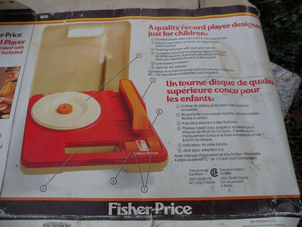 BOX ONLY!! Fisher Price Portable Battery Record Player Orange #820 BOX ONLY!!! This listing is for the BOX ONLY!! The box shows quite a bit of wear please see photos for exact condition. Item #SN