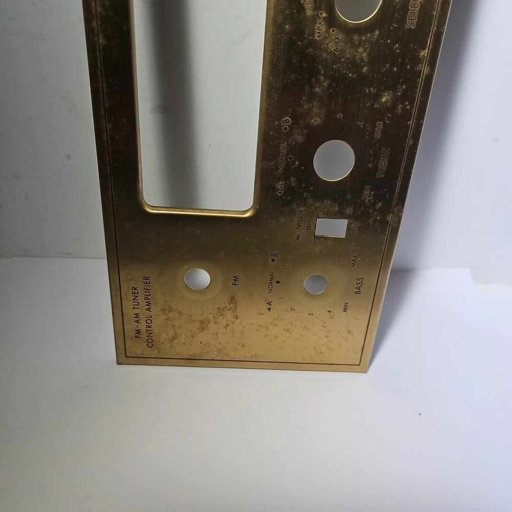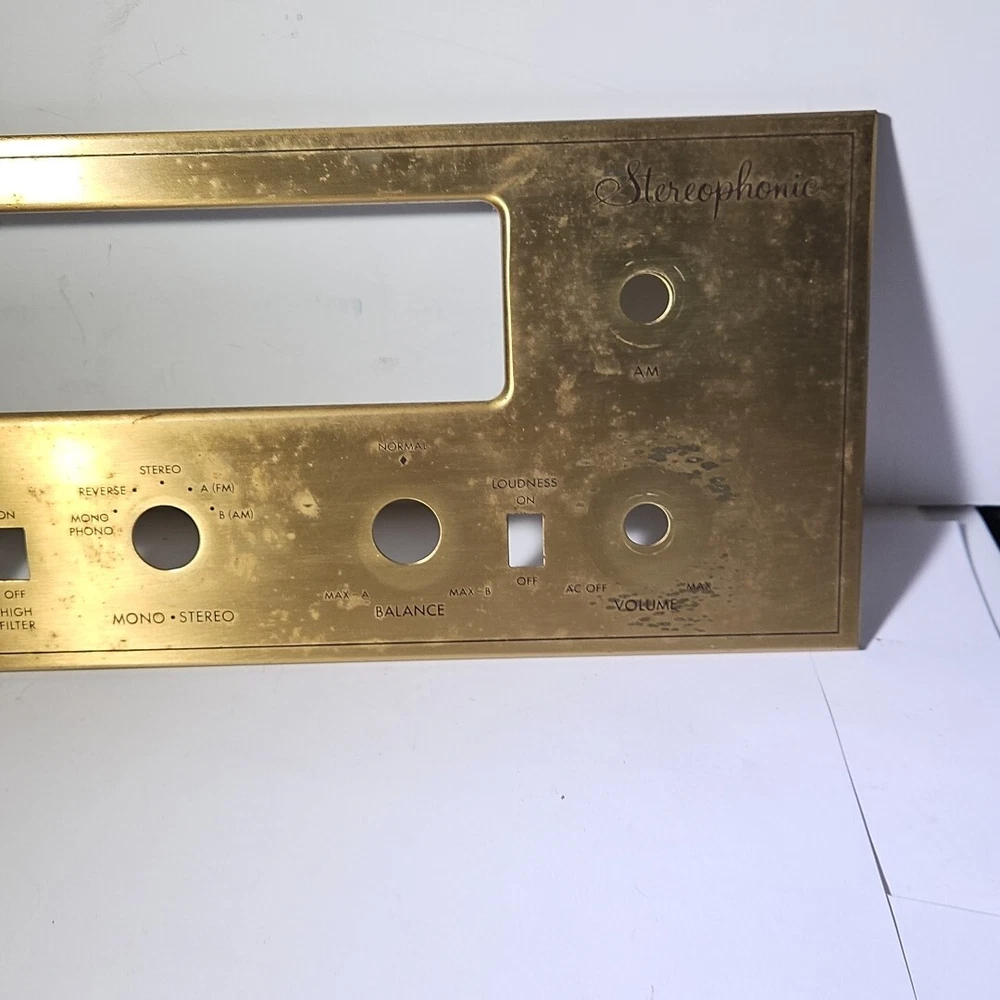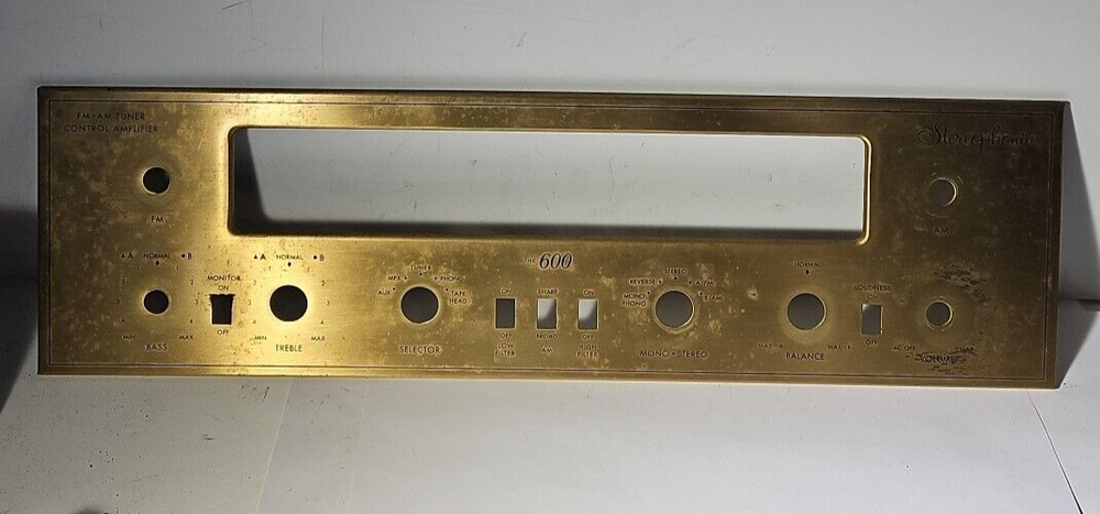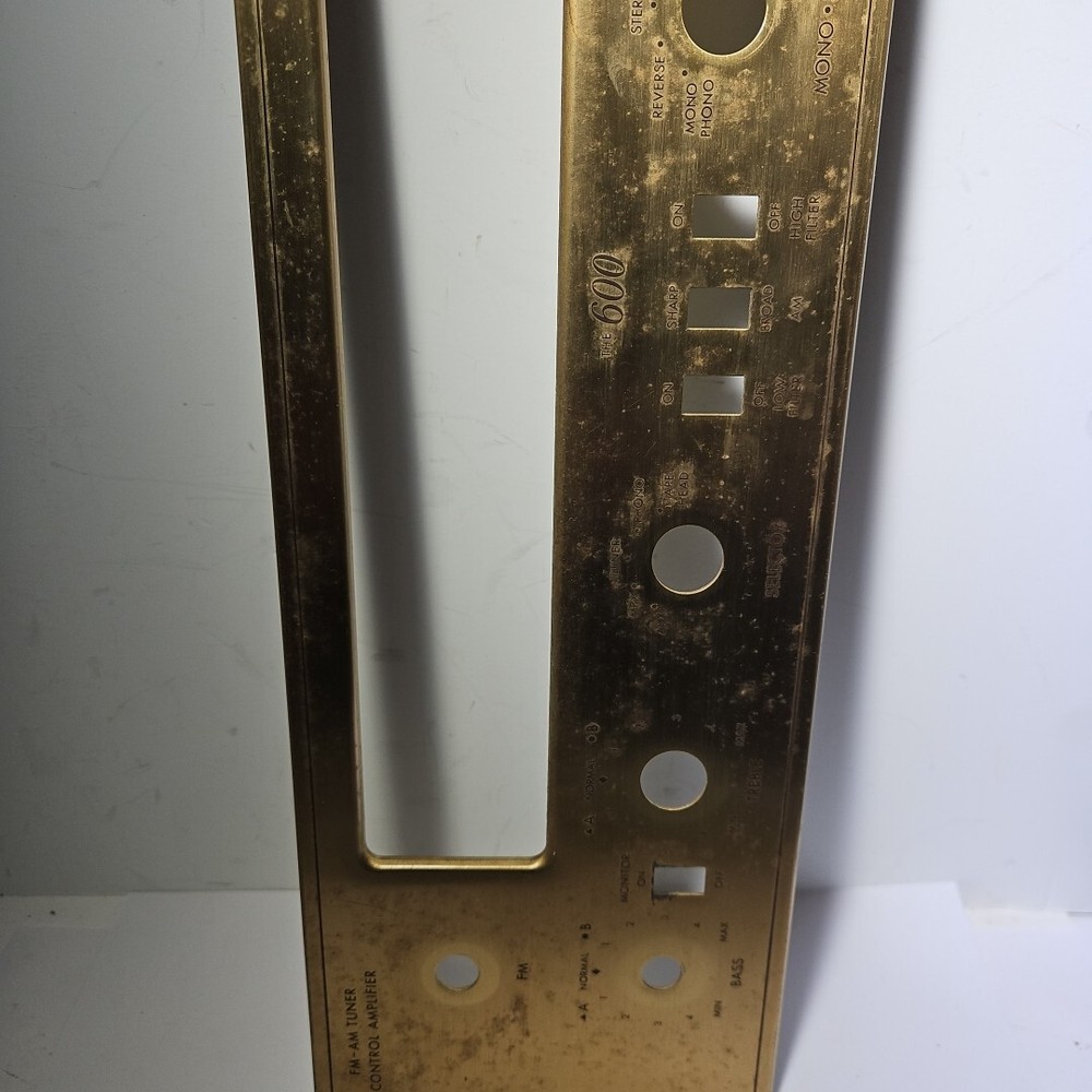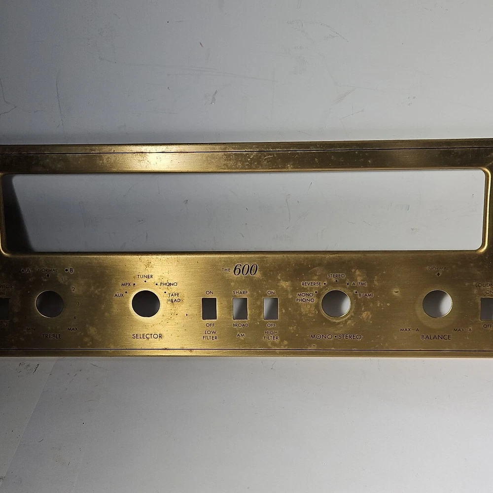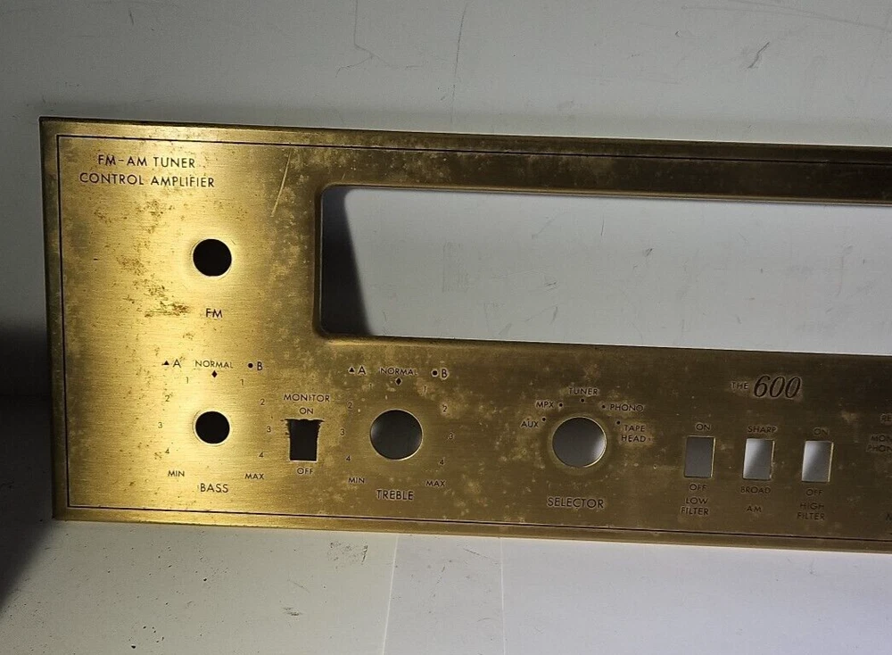 BRASS FACEPLATE Vintage FISHER "The 600" TA600 Tuner AM/FM Phono Audio Receiver This is an original 600 Fisher receiver brass faceplate. Good condition with tarnish. FREE SHIPPING
