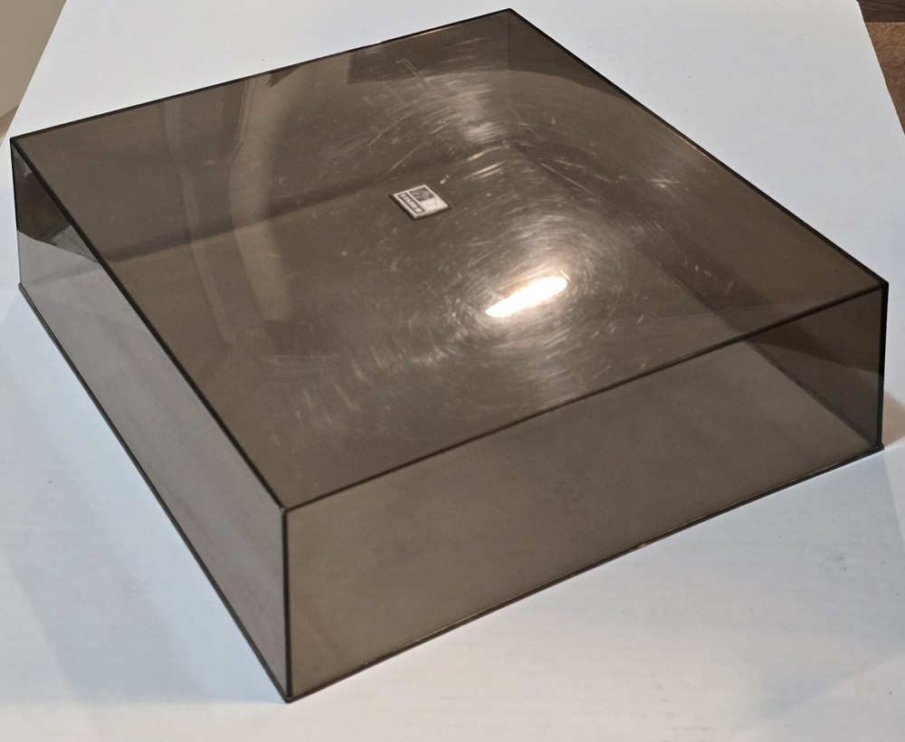 BSR Fisher 225-XA Turntable - PC7 Dust Cover with normal hairline scratches and slight gouging on back edge. Dimensions: 14 5/8 x 13 5/8 x 4 5/8 in.