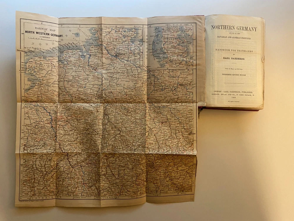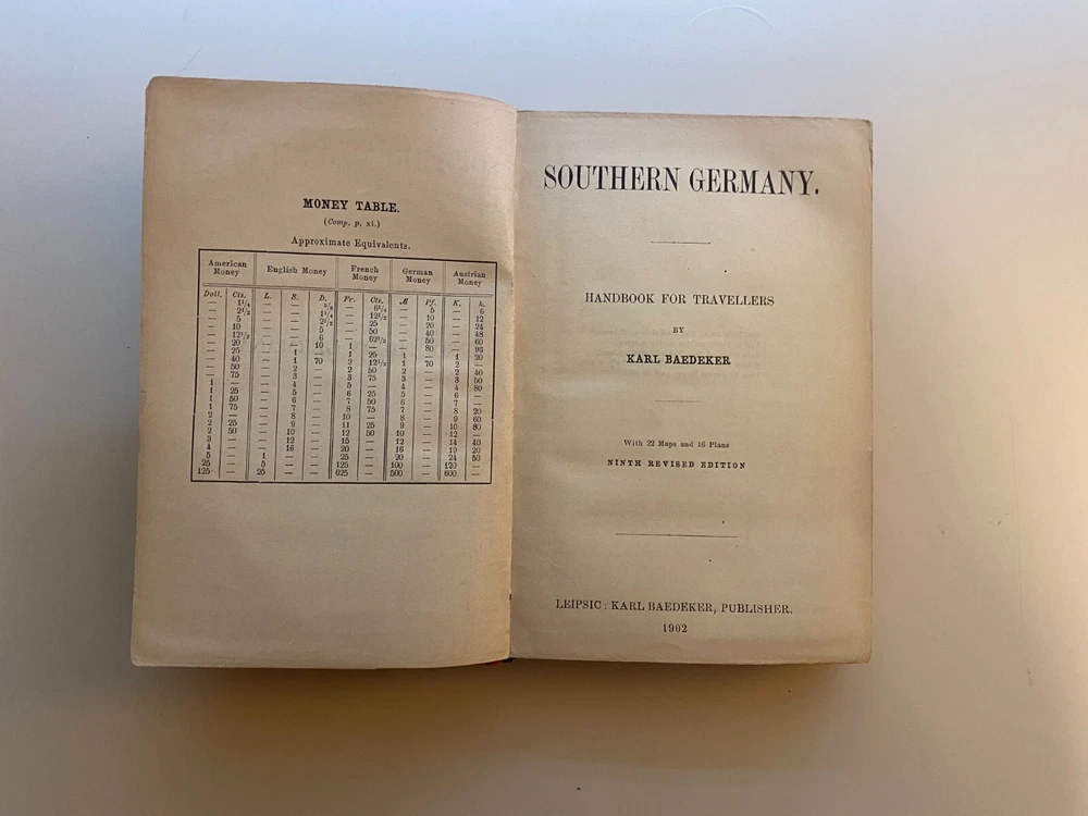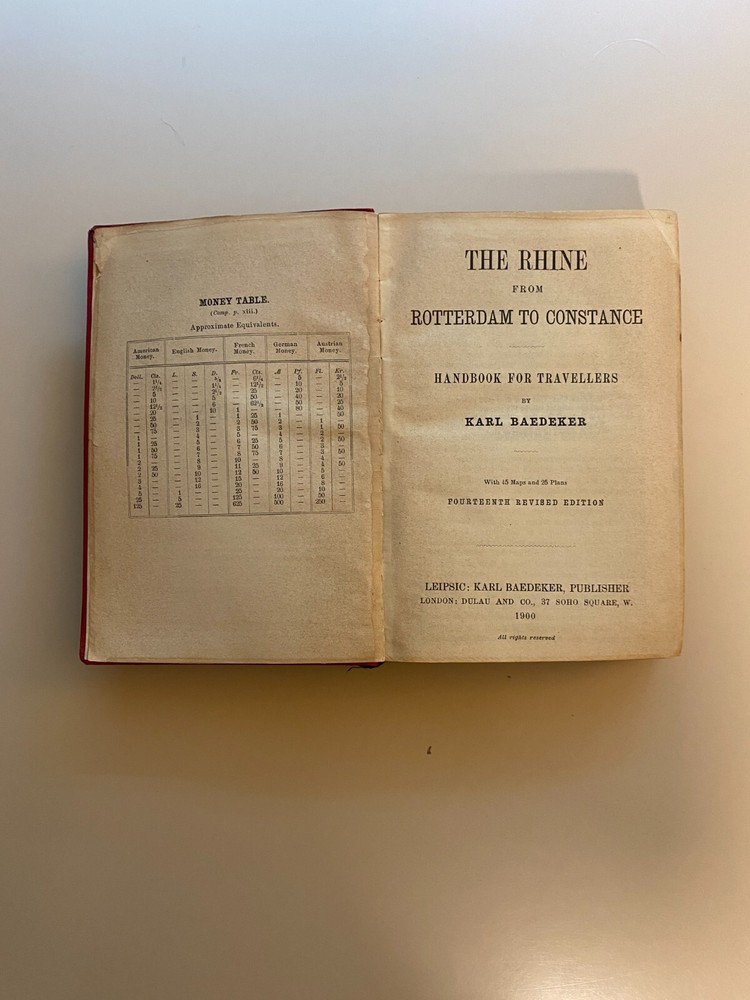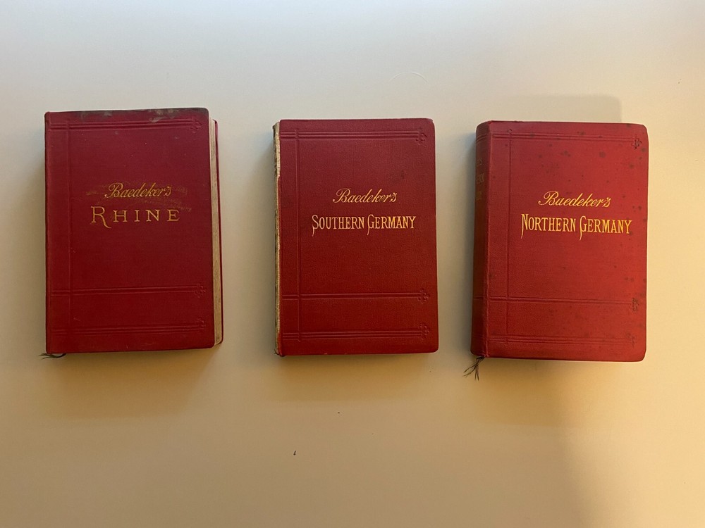 Baedekers Handbook for Travelers (Germany). Lot of 3 Antique Baedeker Travel Guides. See more specific volume information below. Northern Germany as Far as the Bavarian and Austrian Frontiers, 34 Maps and 65 Plans, Thirteenth edition, 1900, Publisher: Leipsic: Karl Baedeker, London: Dulau and Col New York: fair-good condition Southern Germany (Wurttemberg and Bavaria), 22 Maps and 16 Plans, Ninth edition, 1902, Publisher: Leipsic: Karl Baedeker, fair-poor condition, binding cover torn off The Rhine from Rotterdam to Constance, 45 maps, 295 plans, fourteenth edition, 1900, Publisher: Leipzig: Karl Baedeker, London: Dulau and Co. fair-good condition