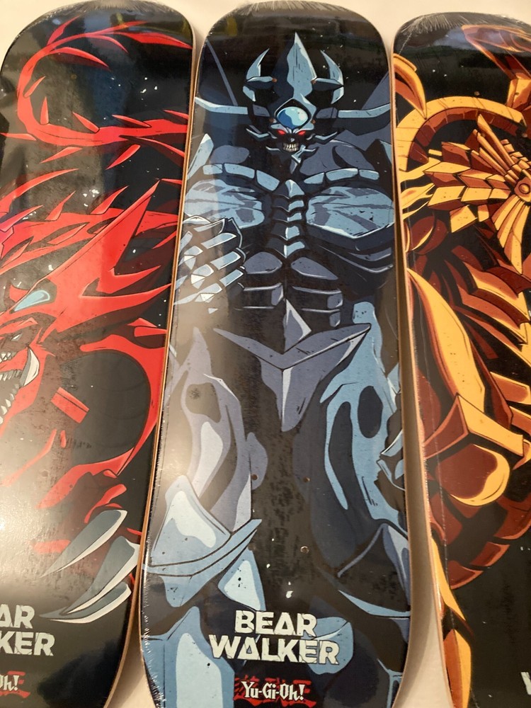 Bear Walker Yu-Gi-Oh! Egyptian God FULLSET Skateboard Decks Ra Obelisk Slifer!!!!! Full Egyptian God Set of the Winged Dragon of Ra, Slifer the Sky Dragon, and Obelisk the Tormentor Bear Walker x Yu-Gi-Oh Skateboard Decks!! Boards are New and in great condition. Never used or skated with. Beautiful! See photos!! Because multiple sets are available, specific board #'s will be randomly selected. If you want any of the specific board #'s, please attach a note to your order! Thank you! Ra: 1099, 1660 Slifer: 1221, 1004 Obelisk: 0520, 343 Size is a 8.25. (See photos for alternative measurements.) I will consider, review, and respond to any and all offers! I can combine shipping if you purchase anything else from me!! Please message me with questions or concerns!!!! I do my sourcing mainly thrift stores, retailers, and sometimes other places! If you have any questions about an item please ask before bidding/buying!