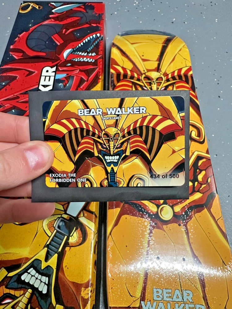 This is a Bear Walker x Yu-Gi-Oh Blind Box These boards are extremely rare. See the photos to see how rare each piece is. This Exodia The Forbidden One #434 / 500 SERIOUS INQUIRIES ONLY!! New with Box (opened, resealed) Box may be damaged due to storage / shipping. We specialize in athletic gear and accessories. Contact us for further questions or specific offers. Follow our store to see when new inventory arrives!