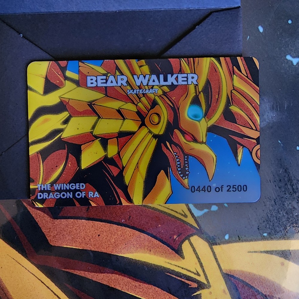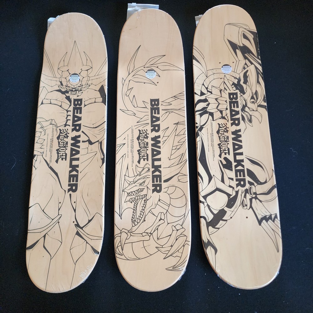 CHEAPEST SET ON EBAY! NEW! Bear Walker skateboard decks featuring Yu-Gi-Oh! Egyptian God theme. The full set includes designs inspired by Winged Dragon of Ra, Obelisk The Tormentor, and Slifer The Sky Dragon! Comes with everything as when you buy new, aside from the box being open to see which were received!