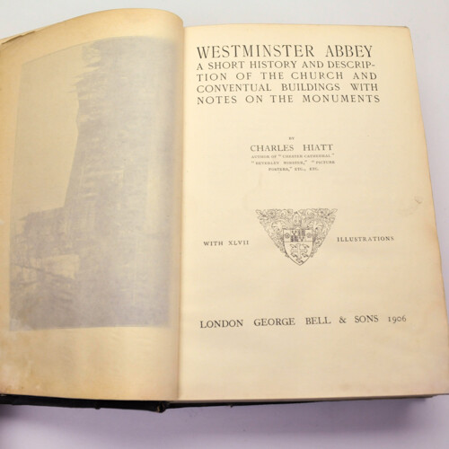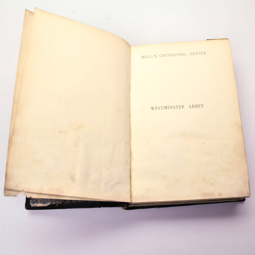 Ebay Listing Template Bell's Cathedral Series. 5 Books Bound In One Volume.; VARIOUS 1902-1906 Title Bell's Cathedral Series. 5 Books Bound In One Volume. Author VARIOUS Illustrator[s] Publisher LONDON: George Bell & Sons Year 1902-1906 Format Hardcover [Half leather and cloth] Edition 2nd Edition Bell's Cathedral Series [2nd Ed, 2nd Ed, 2nd Ed /2nd Imp, Reprint 1904 [Original 1900], 2nd Ed /2nd Imp]. Description Five books bound in one volume from the Bell's Cathedral Series covering Westminster Abbey, Wimbourne Minster, Winchester, Worcester and York. Bound in half black leather binding and black cloth 5 raised bands to spine, gold titles and decoration to spine blocks. Gilt edging to top of the text block. Marbled end papers. The second bound book has smaller pages then the other four. Book plate of Sir James Colquhain [5th Baronet of Luss] to front pastedown. 16mo, 19cm by 12.5cm. pp 140, 134, 132, 115, 156. Signed No Language English Summary Westminster Abbey. Wimborne Minster And Christchurch Priory, Winchester Cathedral, York Minster And Worcester Cathedral. Condition Book Good Heavy wear to corners, edges and spine ends. Some loss of leather to corners. Front spine cracked along half of length. Heavy wear to spine bands and edges. Rubbing to cloth. Intact endpapers with ex libris plate to paste down and chipping to lower edge. Soiled stained lower edge of prelims and rear pages. Dust Jacket Na