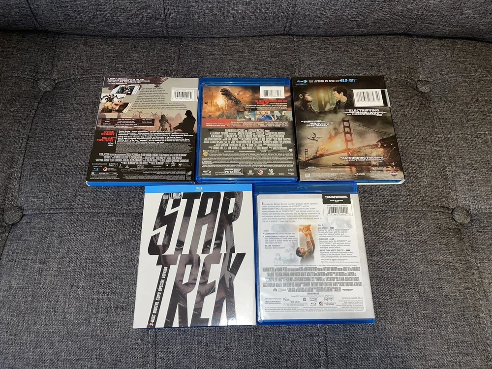 Science Fiction Blu-Ray Movies Set Lot. These are all sci-fi movies that are great for their story and special effects. These are all from my personal collection and are in great shape. These were all bough from a store and are not former rentals. All Blu-rays are Region A, USA. These sets do not include digital copies. The five movies included are: District 9 on Blu-Ray and includes digital DVD disc but no code included (Slipcover Included) Godzilla 1, on Blu-Ray & DVD Rise of the Planet of the Apes 1, on Blu-Ray & DVD which is also the digital copy disc but no code included (Slipcover Included) Star Trek 1, 3-Disc Special Edition Blu-Ray, DVD & DVD digital copy disc but no code included (Slipcover Included) Transformers 1, Special Edition Two-Disc Blu-Ray set Will ship with USPS.