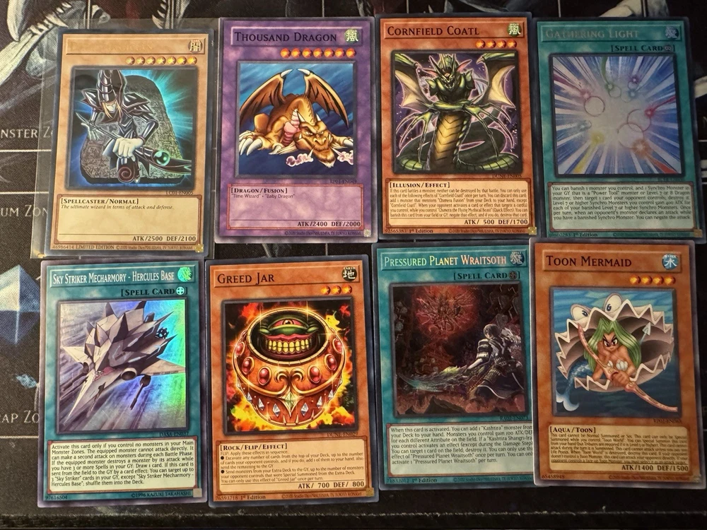 Blue Eyes Alternative Dragon/Blue Eyes Spirit Dragon/Deep Eyes/Ultimate Fusion/blue eyes white dragon/dark magician (limited edition)/Slifer the sky dragon/Skull Meister/Thousand Dragon and more! Total of 37 cards
