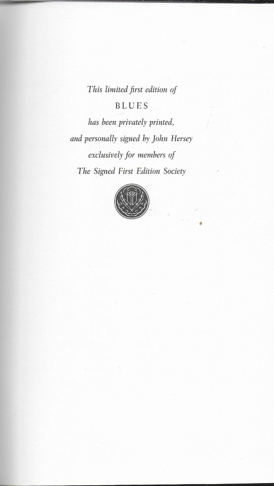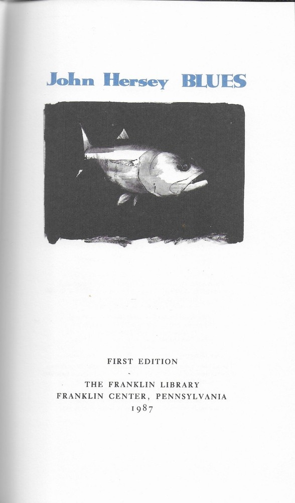 Blues by John Hersey, Frankl in Library, Signed 1 st Ed., text illustrations by James Baker, color paste down is by Dugald Stermer, and the color map is by David Lindroath. Franklin Center, PA published the book, special contents copyright 19 87 . The book is part of Franklin Library’s series The Signed First Edition Society. John Hersey signed the front blank fly leaf. T he interior, beautiful leather cover, and attached bookmark are in f ine, like new condition. There are no marks, tears or bookplates . The page edges are richly gilded to seal out moisture. The book is 5 1/2 ” x 9 7/8 ” and 23 5 pages, plus a 1 page colophon . Laid in the front, is the Franklin Library Letter on the book. Please if you need any additional information and photos, eBay message me. Combine Shipping Discount!!!!! Save money when you buy more than one item (lot) from us! Except in rare cases, s & h to a U. S. address via media mail in the same box is $1.35 for each additional book. eBay may automatically send a combine invoice with the wrong s & h. Please wait to pay until you receive my combine invoice with the correct s & h. PLEASE CHECK OUT MY eBAY STORE AND OTHER AUCTIONS!!! 12 19 2024112024