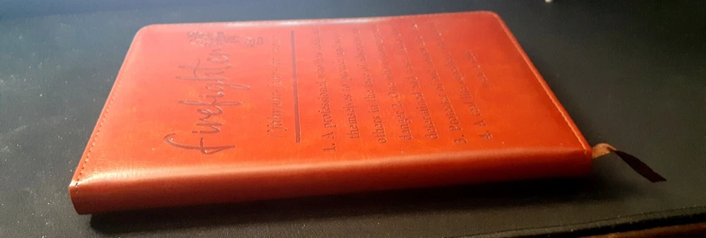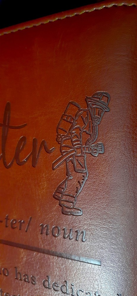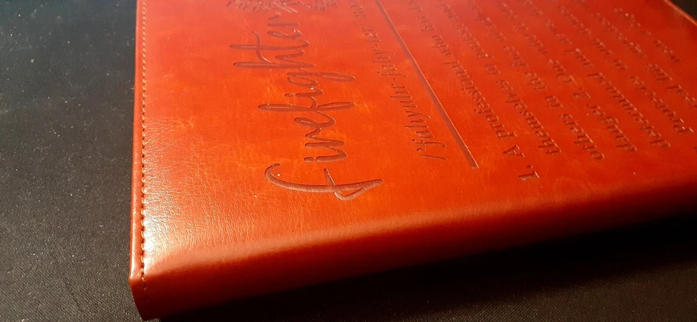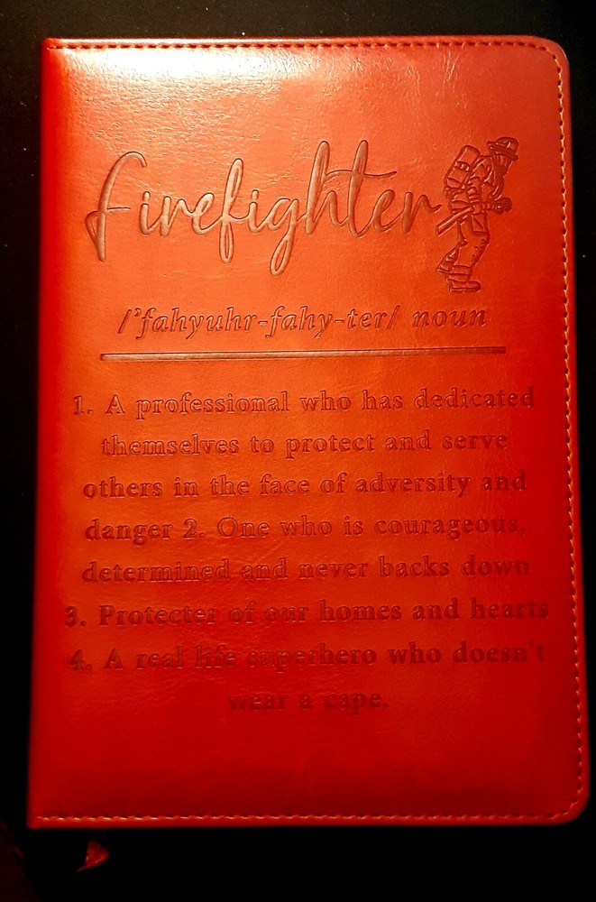 Brand New!! "Firefighter" Personal Leather-Bound Journal! Great Gift!! 195 Pages This high-quality leather-bound journal is perfect for anyone who wants to record their thoughts and ideas in a stylish and practical way. With 195 pages, this journal is ideal for keeping track of important dates, notes, and contacts. The cover material is made of soft and durable leather, ensuring that your journal will last for years to come. It features a sleek and modern design, with plenty of space for writing, drawing, or pasting photographs and other memorabilia. This journal is perfect for anyone who wants to keep track of their thoughts and ideas in a professional and engaging way. The "Firefighter" definition on the cover makes the journal Very Personal for the firefighter in your life. The "Firefighter" Personal Leather-Bound Journal is a great gift for anyone who is a firefighter or who wants to support the fire department.