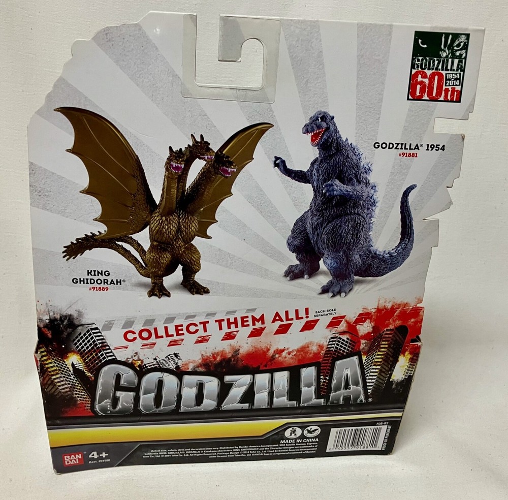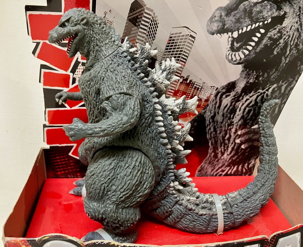This is a Brand New GODZILLA 2014 60th Anniversary in a Display Box. © 2014 Toho Co, Ltd. #91880. Arms, legs, head and tail swivels! UPC: 045557918811. Condition: Godzilla is mint in display box. Box has a little wear on the bottom corners. It also has some faint impressions on the back of the cardboard display that aren’t bad at all. Payment by PayPal. Shipping is by USPS Ground Advantage Mail.