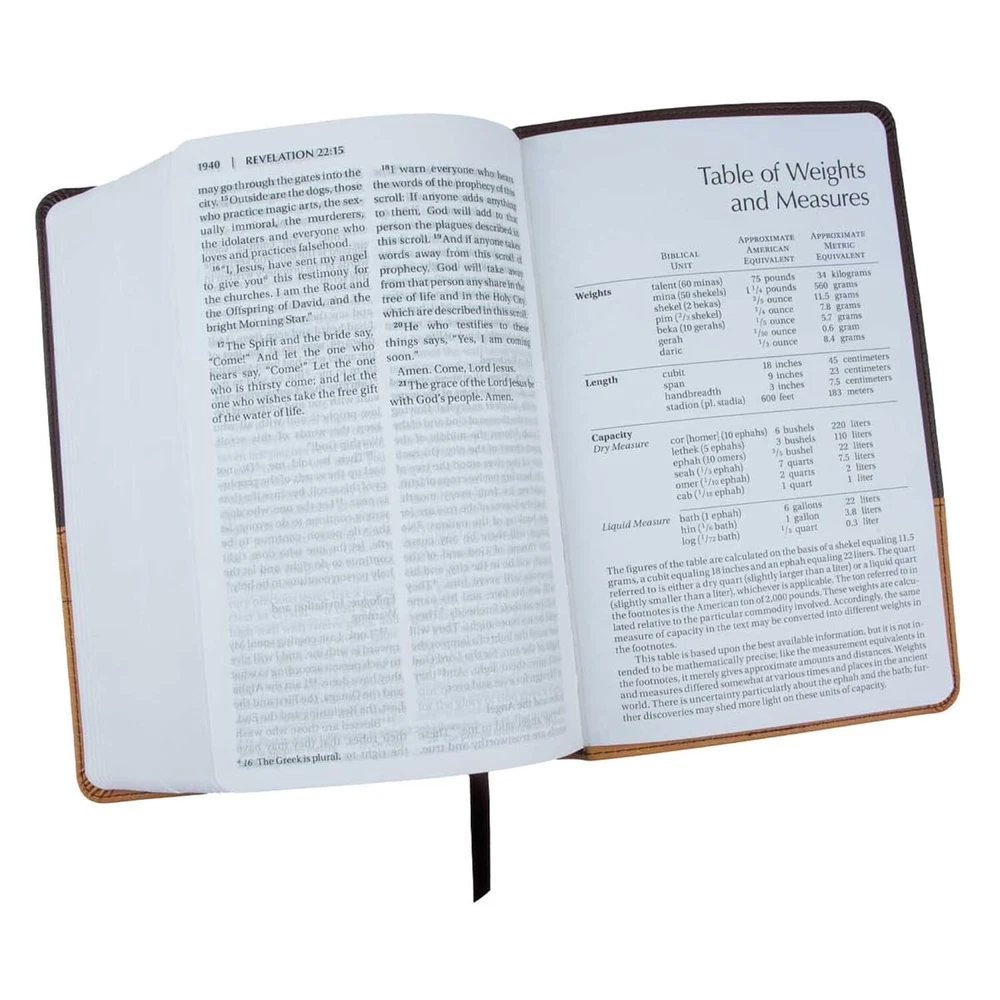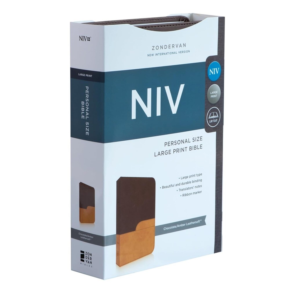 Niv Large Print Personal Size Holy Bible Two Tone Leathersoft Zondervan BRAND NEW NEVER READ NIV TRANSLATION OF THE CHRISTIAN BIBLE PUBLISHED BY ZONDERVAN. THE COVER IS A SOFT FLEXIBLE LEATHER OF TWO COLORS, CHOCOLATE AND AMBER. A BROWN RIBBON BOOKMARK IS ATTACHED TO THE SPINE. THIS IS AN EAST TO READ LARGE PRINT BIBLE WITH 1942 PAGES. Comes with Gift Box Sleeve. SHIPS FROM THE USA Large Print Type easy to read - Personal Size so easy to hold Subject Headings Translator's notes Beautiful and Durable binding Ribbon Marker Lay Flat for easy ready Fast and Free Shipping You're already purchasing the item. Why pay additional for shipping, especially slow shipping? We get your order shipped out within 1-business day and delivered to your doorstep as quickly as possible. Competitive Pricing With our dynamic pricing model, our prices are always competitive. Our prices are some of the lowest that you will find on the internet. Rest assured that you're getting a good deal when purchasing with us. 30-day Money Back Guarantee We are committed to making sure that you leave this transaction satisfied. If you're unhappy with the product for any reason, you may return it back for your money-back or a replacement within 30 days. No questions asked!