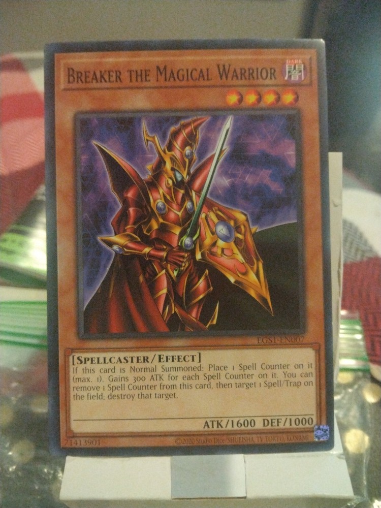This is a set of three Breaker the Magical Warrior cards from the Egyptian God Deck: Slifer the Sky Dragon. These cards are a Standard size and have an ATK of 1600 and DEF of 1000. They are in excellent condition and have not been graded. The cards are common and have the EGS1-EN007 card number. They were manufactured by Konami in 2020 and are in English. These cards do not include an autograph and were not part of a special event or convention. They are perfect for any Yu-Gi-Oh! fan or collector.