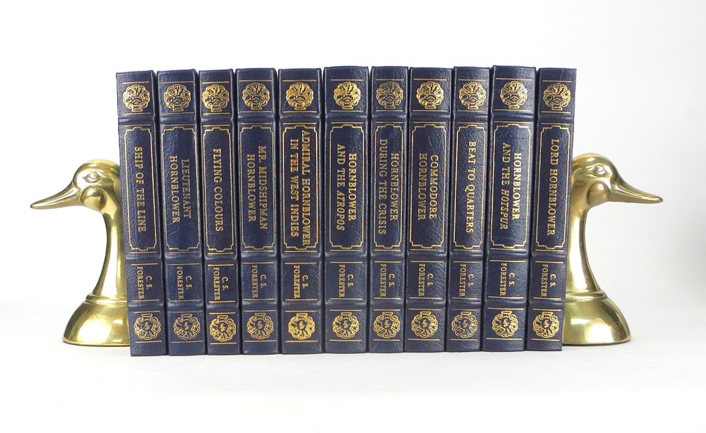 C. S. Forester Set / 11 Volumes Hornblower Series Easton Press Set Includes: 1. Admiral Hornblower in the West Indies 2. Mr. Midshipman Hornblower 3. Flying Colours 4. Lieutenant Hornblower 5. Ship of the Line 6. Hornblower and the Atropos 7. Hornblower During the Crisis 8. Commodore Hornblower 9. Beat to Quarters 10. Hornblower and the Hotspur 11. Lord Hornblower Each volume includes the 1 page publisher sheet laid in. S14E - E
