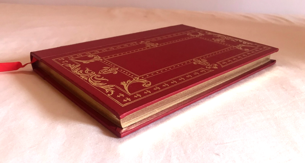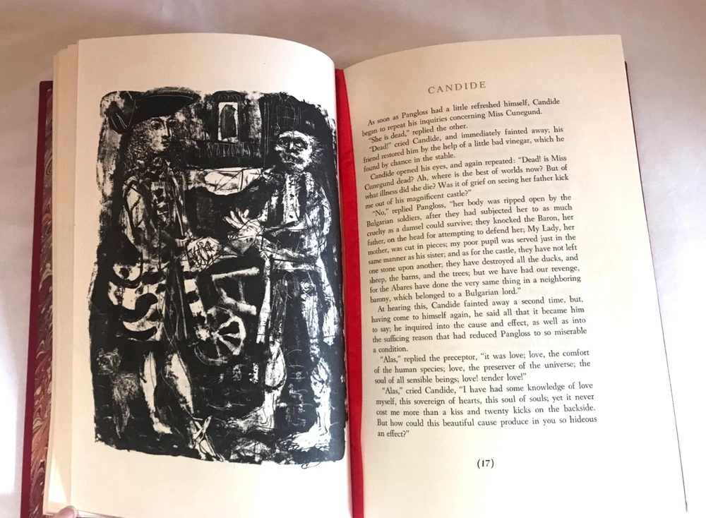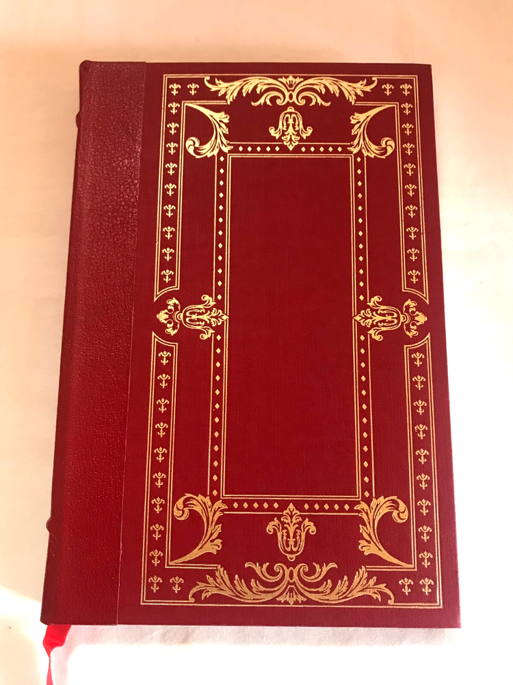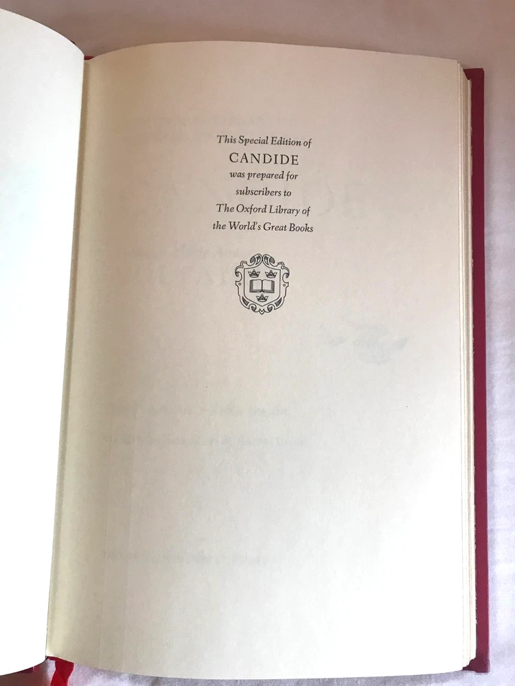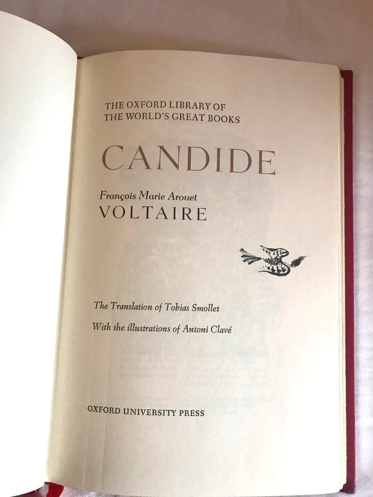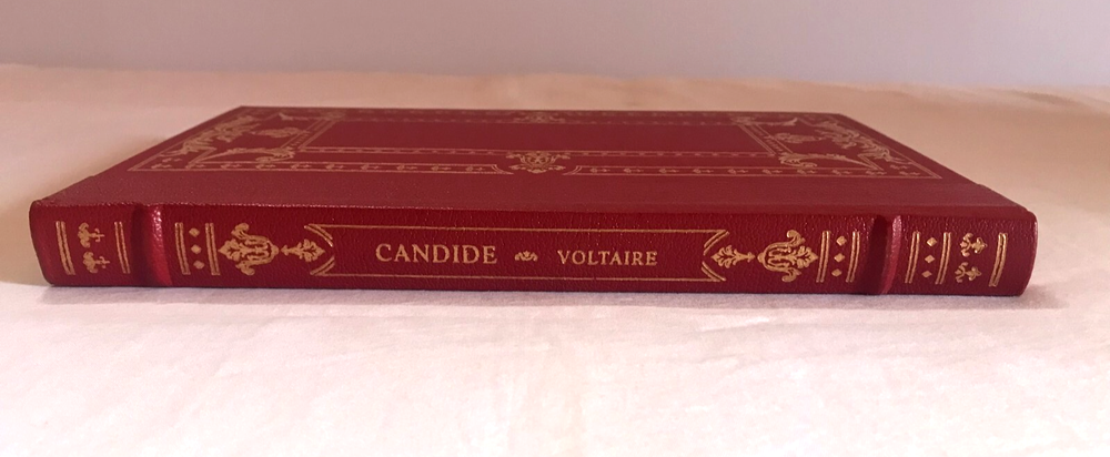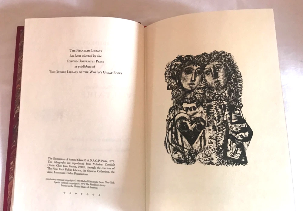 You are considering a vintage LIMITED EDITION hard cover book from the FRANKLIN LIBRARY: CANDIDE by Voltaire; translated by Tobias Smollet; illustrated by Antoni Clave; Published in 1981 with 155 pages. A special edition prepared for subscribers to the Franklin series: THE OXFORD LIBRARY of the WORLD'S GREAT BOOKS. Spine is wrapped leather; cover is faux tooled leather with 22K gold gilt.. Spine has 2 raised bars. Has 22k gold gilting on all three sides or page edges. This book was issued by FRANKLIN LIBRARY. Franklin Library stopped publishing books in 2000. Since that time, these books have become very collectible.