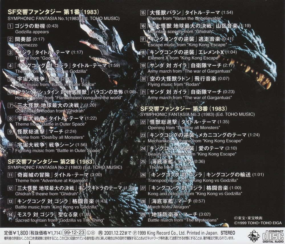 [CD] A TRIBUTE TO Godzilla Akira Ifukube SF SYMPHONIC FANTASY Complete KICS-775 [CD] A TRIBUTE TO Godzilla Akira Ifukube SF SYMPHONIC FANTASY Complete KICS-775 ++ Product Features ++ ++ Shipping & Handling, Payments ++ Economy Shipping - We will ship using the postal service. - United States, Canada, Mexico, Europe, Russian Federation, Middle East, Oceania, Asia ... takes 2-4 weeks. - South America, Africa ... takes 2-6 weeks. Expedited Shipping - We will ship using EMS or DHL or FedEx. - We will choose the shipping company, but please contact us if you have any specific instructions. - If your address is specified in a remote location for the shipping company, I will tell you. - United States, Canada, Mexico, Europe, Russian Federation, Middle East, Oceania, Asia ... takes 1-2 weeks. - South America, Africa ... takes 2-4 weeks. #We usually ship within 5 business days of receiving cleared payment. #Our return policy, In the only case of unopened item package. We ship items from Japan. Import duties, taxes, and charges are not included in the item price or shipping cost. These charges are the buyer's responsibility. ++ (^^) ++ Thank you for seeing my item. I live in Akihabara. If you have any questions about the item, please contact us from "Contact seller".