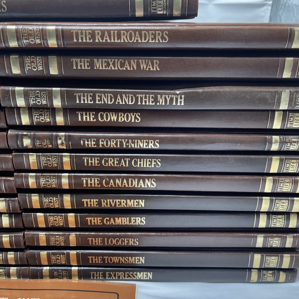 The Old West Series Time Life Books Faux Leather Books. (Choice - titles will be removed when sold). The book (Gunfighter) does have issue with the front of book as shown in picture. it was on the bottom upside down on a rack The Spanish West The Soldiers The Texans The Frontiersmen The Gunfighters The Pioneers The Ranchers The Chroniclers The Miners The Indians The Alaskans The End and the Myth The Railroaders The Cowboys The Forty-Niners The Great Chiefs The Canadians The Rivermen The Gamblers The Loggers See pictures for condition. Shipping within one business day of payment. Will combine orders, see what else you can find in our store! Thank you for supporting our business! Jen & Ron (Hokie Okie, LLC)