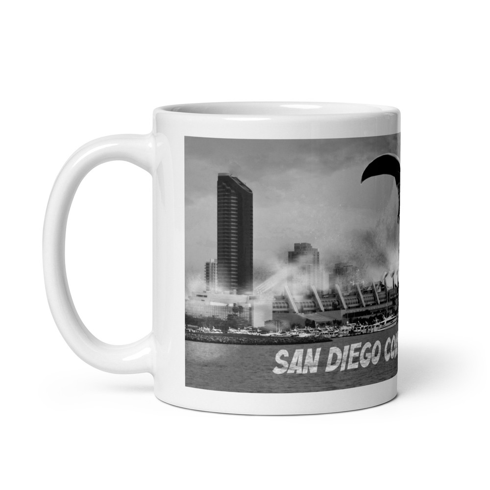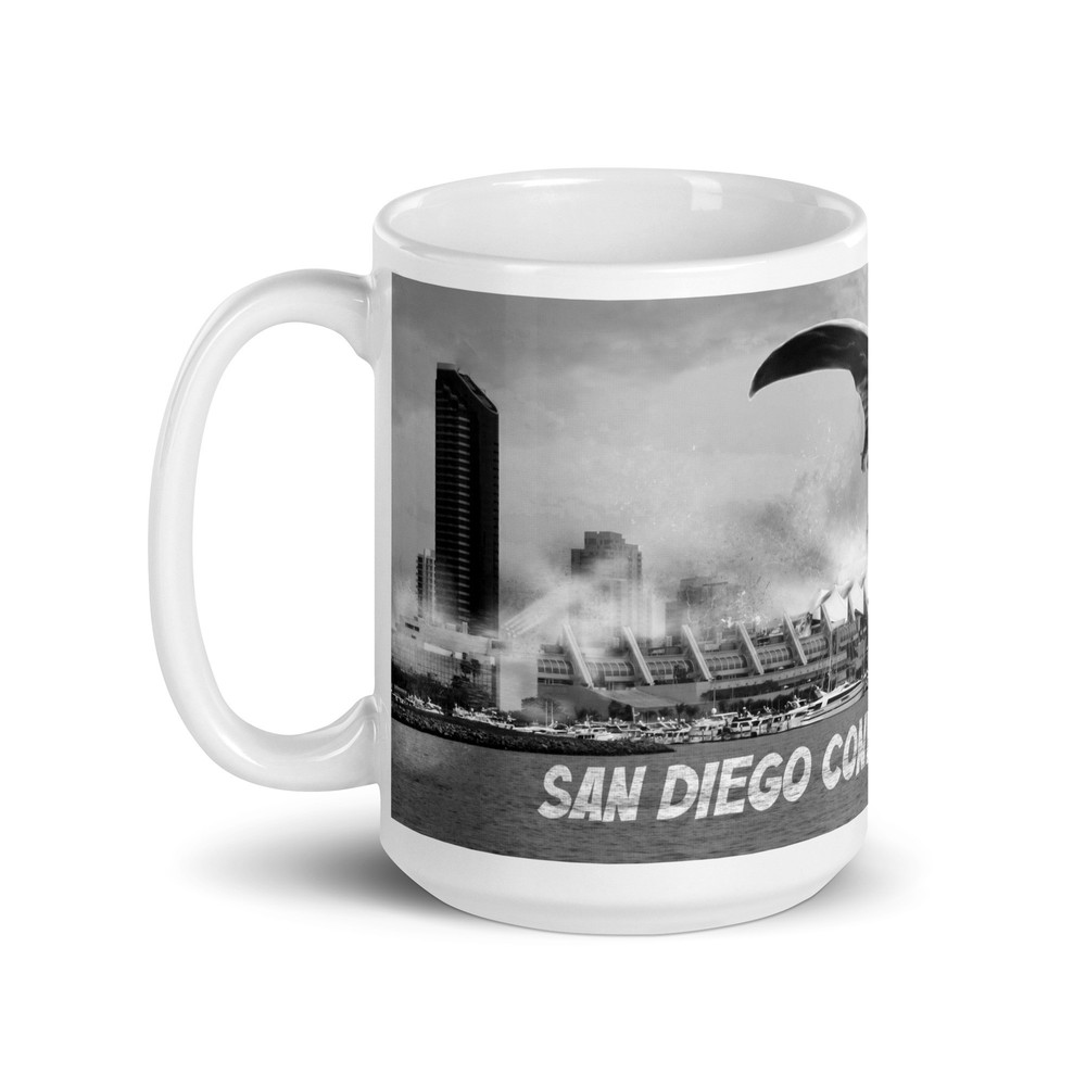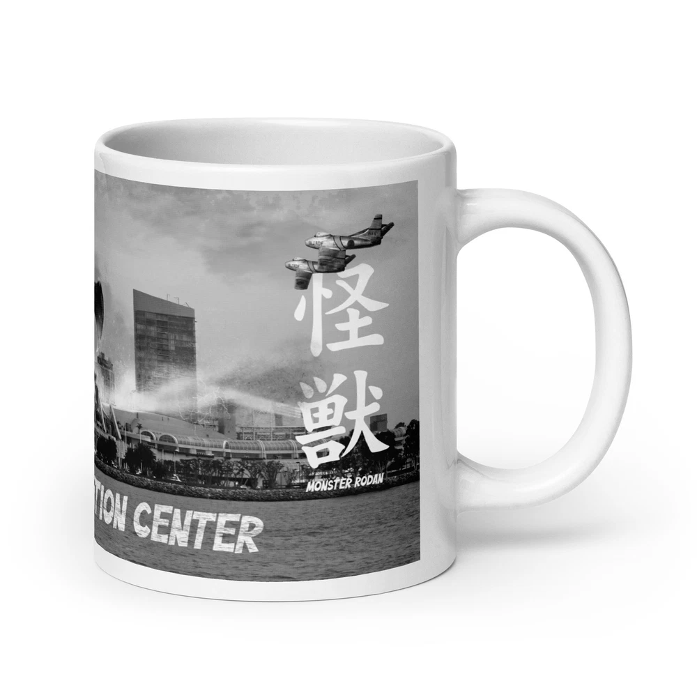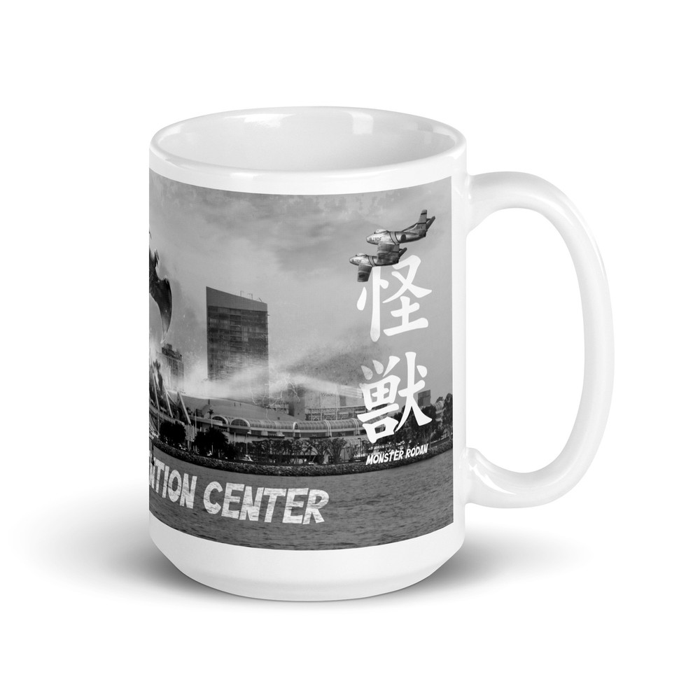 COFFEE CUP Rodan attacks San Diego Convention Center SDCC. Unleash your inner Kaiju enthusiast with this one-of-a-kind coffee cup! Featuring a dynamic, photorealistic depiction of Rodan tearing through the San Diego Convention Center at SDCC for comic con, this mug is the perfect way to start your day with a monstrous jolt. Made from durable ceramic and boasting a comfortable grip, it's ideal for enjoying your favorite beverage while reminiscing about epic convention moments or simply showcasing your love for the King of the Skies. Get yours today and let Rodan's rampage fuel your day! Whether you're drinking your morning coffee, evening tea, or something in between—this mug's for you! It's sturdy and glossy with a vivid print that'll withstand the microwave and dishwasher. • Ceramic • 11 oz mug dimensions: 3.8″ (9.6 cm) in height, 3.2″ (8.2 cm) in diameter • 15 oz mug dimensions: 4.7″ (11.9 cm) in height, 3.3″ (8.5 cm) in diameter • 20 oz mug dimensions: 4.3″ (10.9 cm) in height, 3.7″ (9.3 cm) in diameter • Lead and BPA-free material • Dishwasher and microwave safe • Blank product sourced from China This product is made especially for you as soon as you place an order, which is why it takes us a bit longer to deliver it to you. Making products on demand instead of in bulk helps reduce overproduction, so thank you for making thoughtful purchasing decisions!