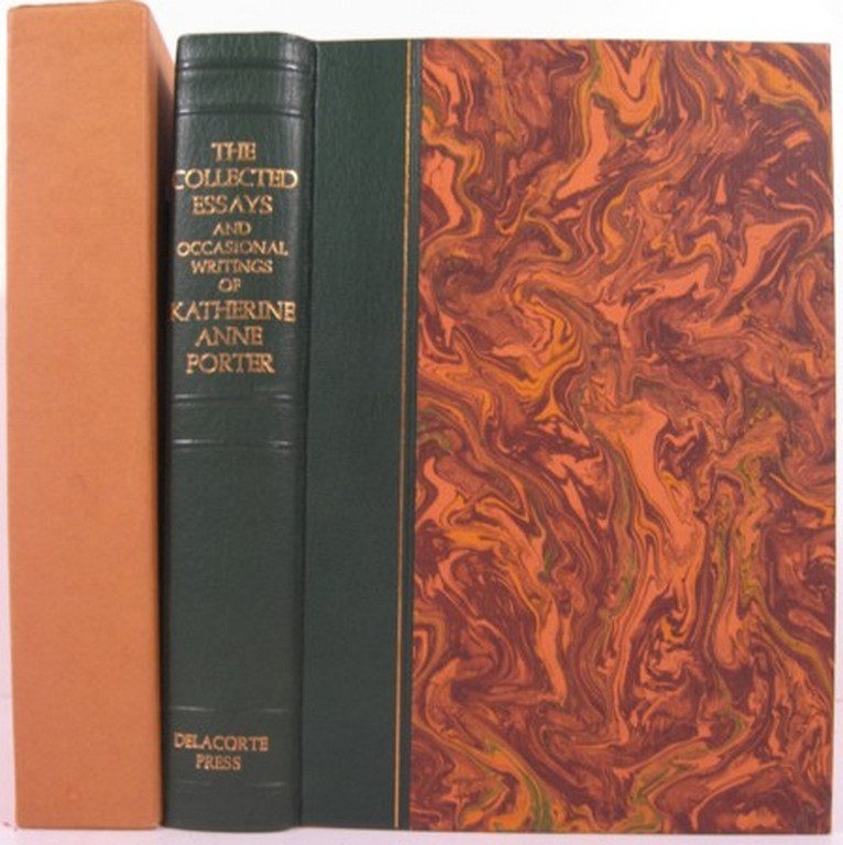 THE COLLECTED ESSAYS AND OCCASIONAL WRITINGS OF KATHERINE ANNE PORTER Author: Porter, Katherine Anne Title: THE COLLECTED ESSAYS AND OCCASIONAL WRITINGS OF KATHERINE ANNE PORTER Publication: New York: Delacorte Press, (1970) Edition: First edition. LIMITED TO 250 COPIES SIGNED BY PORTER Description: New York: Delacorte Press, (1970). First edition. LIMITED TO 250 COPIES SIGNED BY PORTER. xi, 496p. Bound with gilt-titled green leather spine over marbled boards, t.e.g. As new in slipcase. Item #12718 Seller ID: 12718 First Folio Paris, TN Established in 1980, First Folio is a purveyor of fine and rare books in many fields. Our major holdings include fine bindings and illustrated books, but we also handle a wide range of subjects emphasizing quality and condition. We are members of the Antiquarian Booksellers Association of America (A.B.A.A.) and the International League of Antiquarian Booksellers (I.L.A.B.). We subscribe to and comply with their codes of ethics. Guarantee All items may be returned within 30 days, with a full refund including shipping costs if an item arrives misdescribed or damaged. Shipping Expedited and international shipping is available, please contact us for a price quote BEFORE placing an order. We are happy to combine shipping on multiple items. Payment We prefer PayPal. Feedback We leave feedback after receiving buyer's feedback. If you are unhappy with your order for any reason, please contact us, and we will resolve the problem! This listing was created by Bibliopolis.