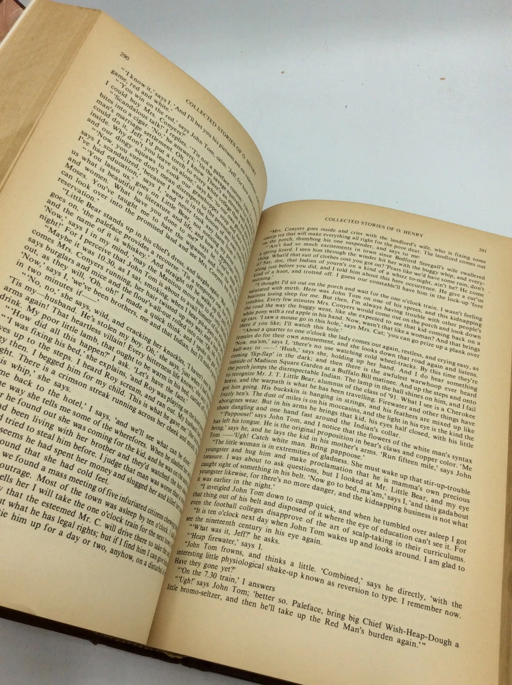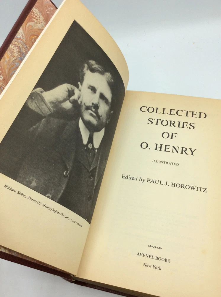 COLLECTED STORIES OF O. HENRY by O. Henry; Paul J. Horowitz, ed. New York: Avenel Books, 1979. Leather. 843p. A hardcover book bound in red bonded leather with gilt decorations. Very good condition overall. The gilt edges are chafed. Small water stain at the bottom corner, penetrating just a bit into the page margin. All pages tanned with age. Otherwise, text clean and binding tight. Item #191212 ISBN: 0517294559